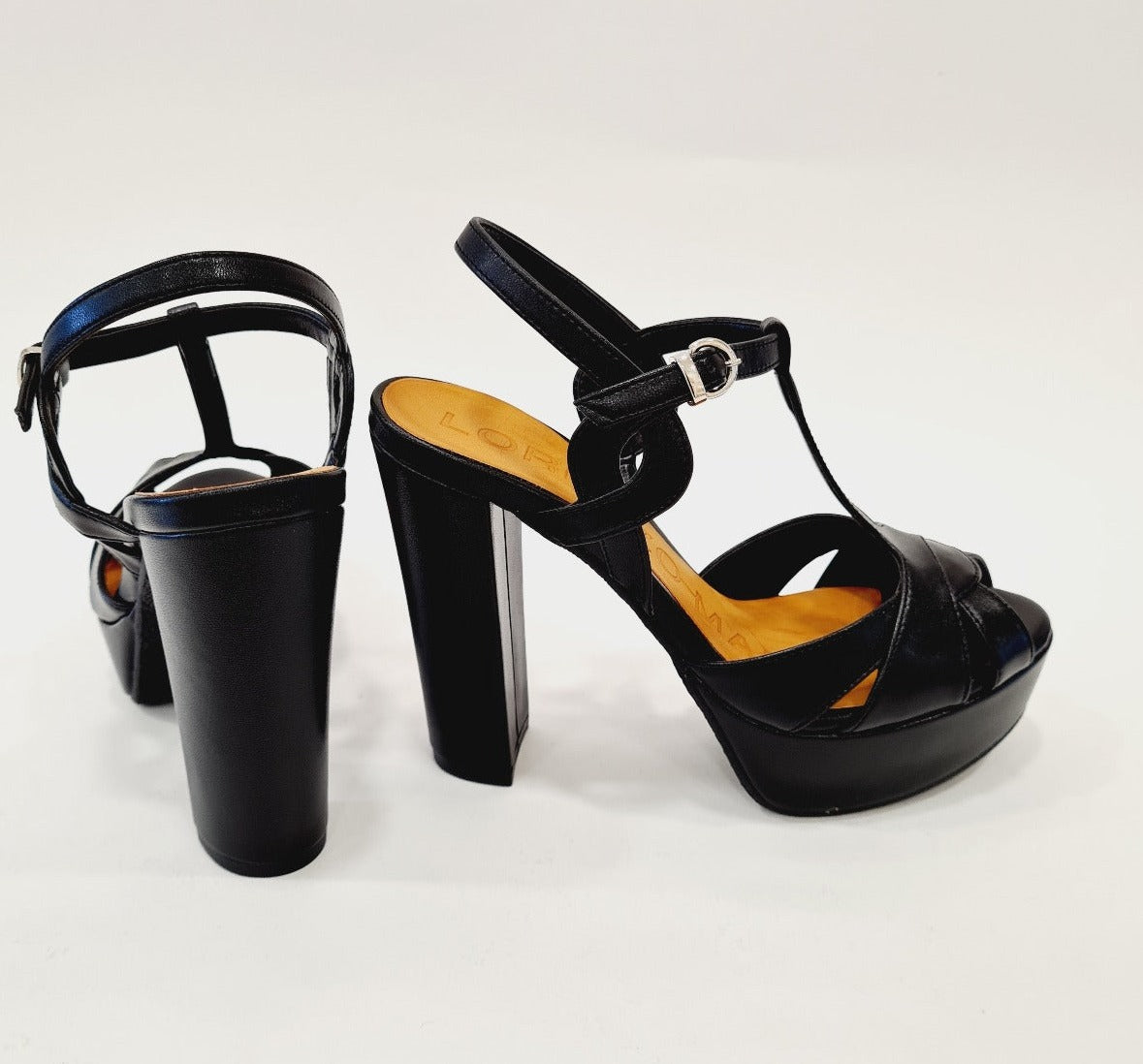 Lorenzo Mari sandalo cinturino a T tacco alto 12 cm. plateau 3,5 cm. pelle nero rif.753