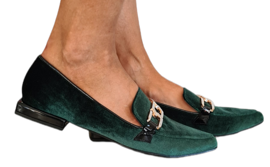 San Piero mocassino donna velluto verde con accessorio oro rif.22