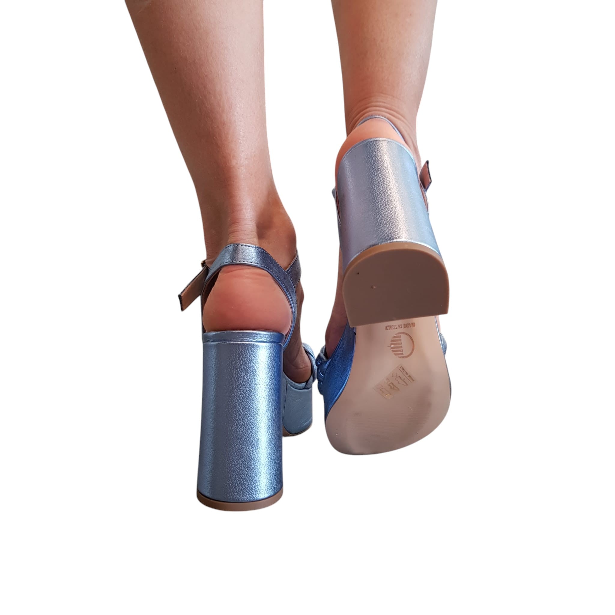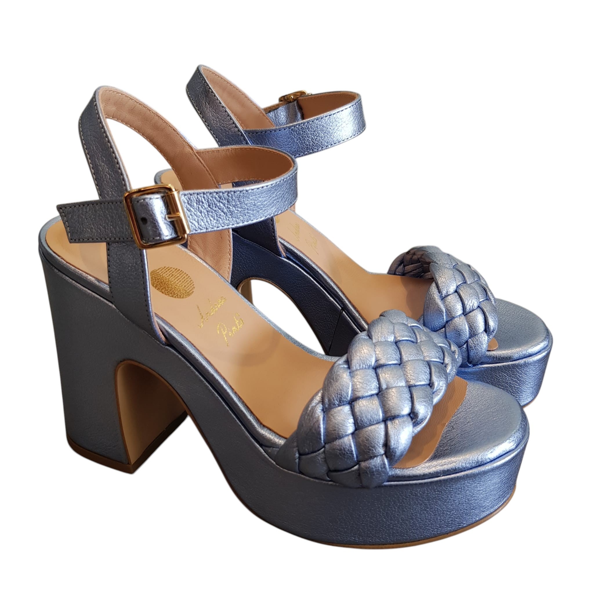 Andrea Pinto Sandalo Donna tacco alto 11 cm.Plateau 4,5 cm. Pelle Laminata Jeans Rif.1094