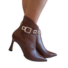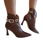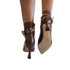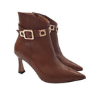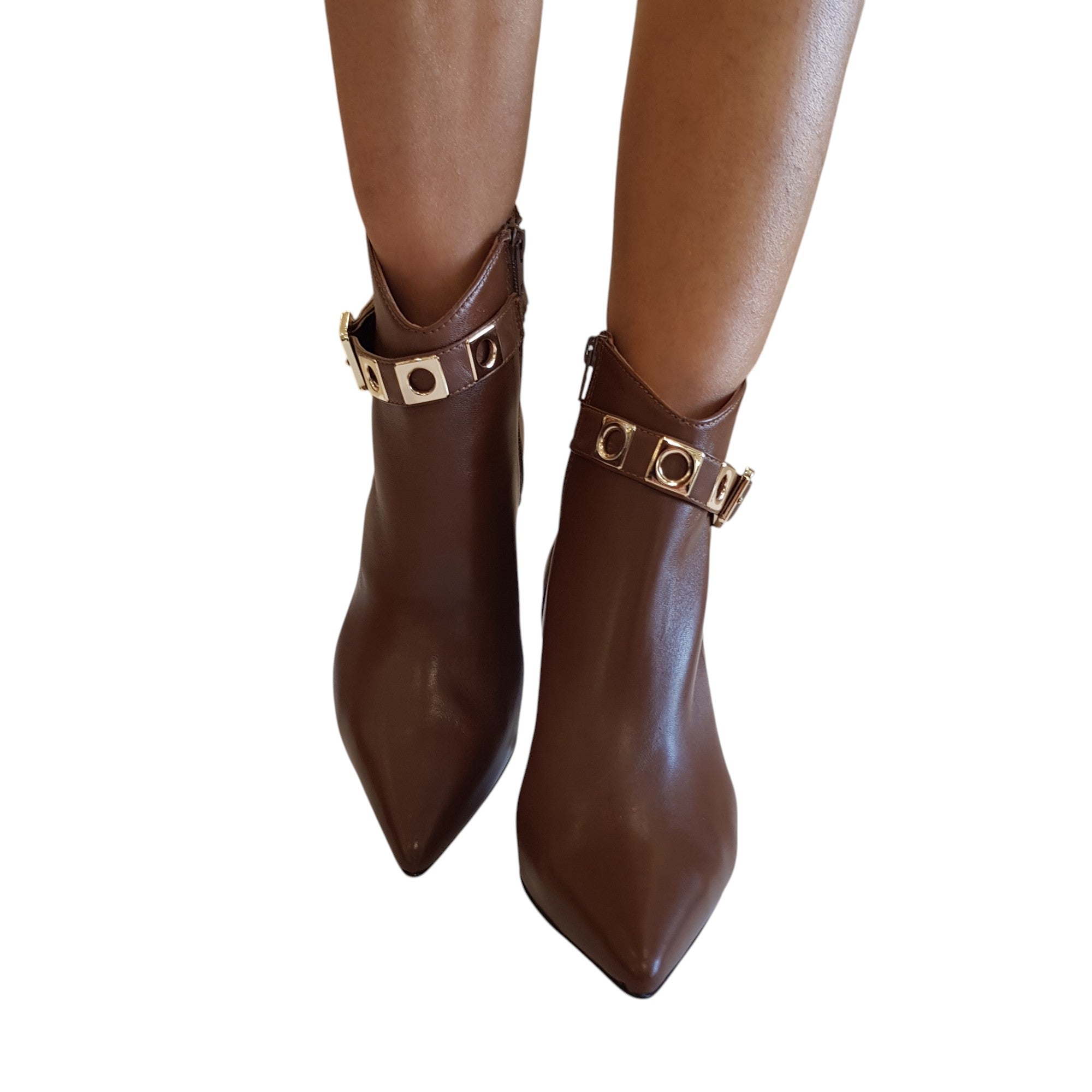 Andrea Pinto Stivaletto Donna con accessorio fibbia oro tacco alto 8 cm. pelle Sigaro Rif.1006