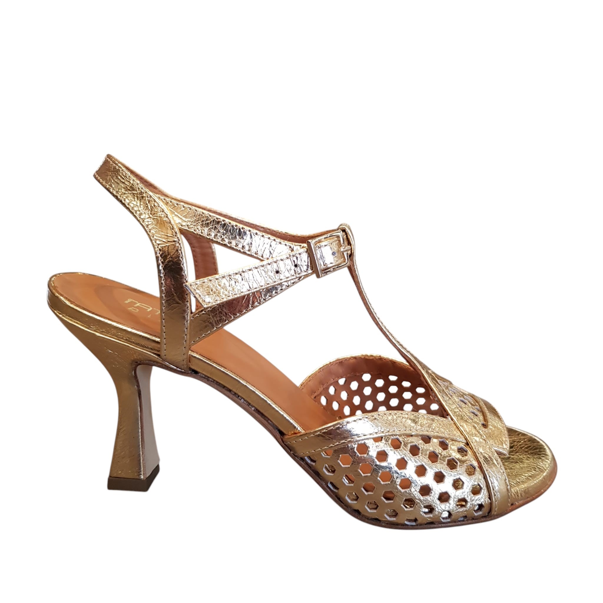 Tattoo Sandalo Donna Pelle laminato Platino cinturino collo piede tacco alto 8,5 cm. rif.780