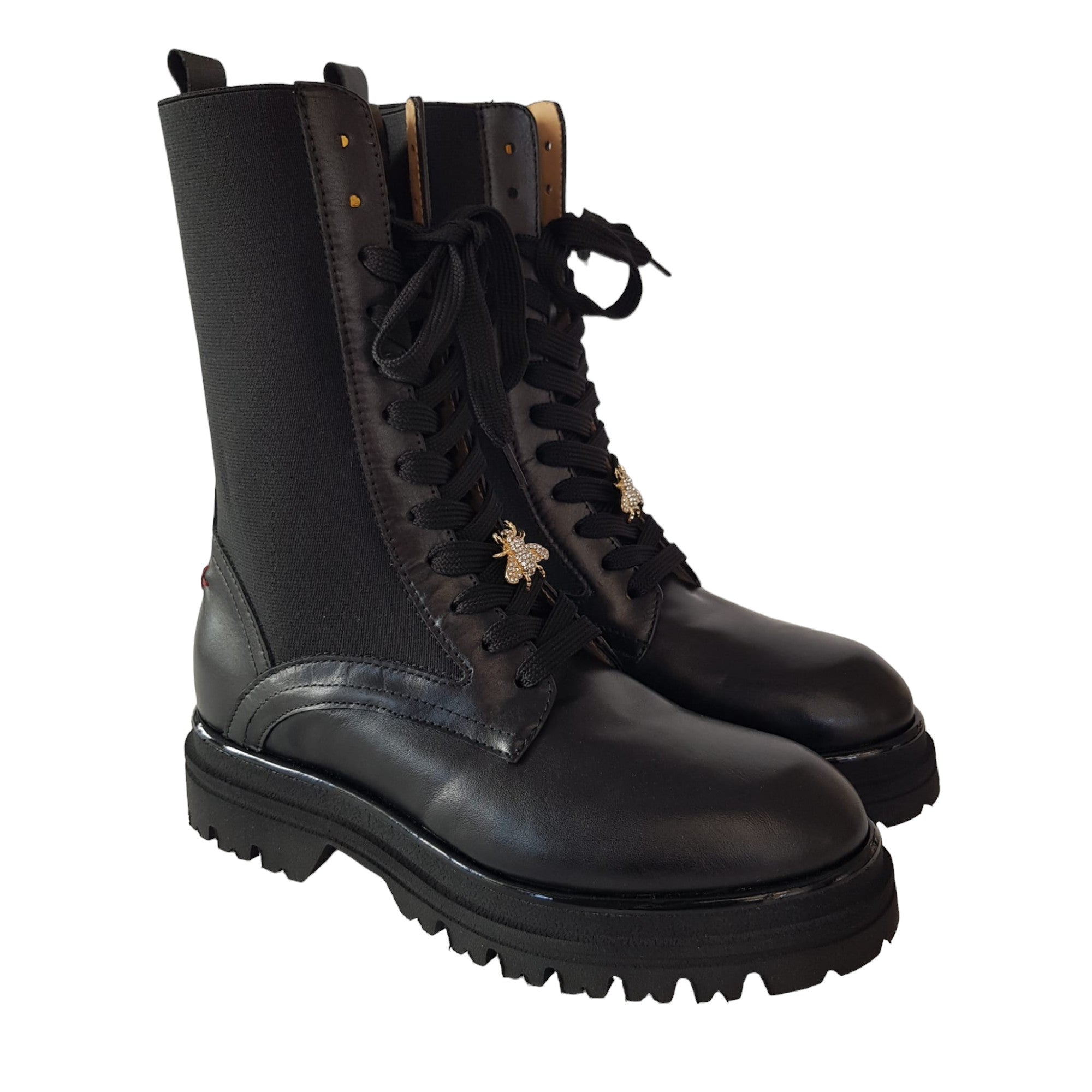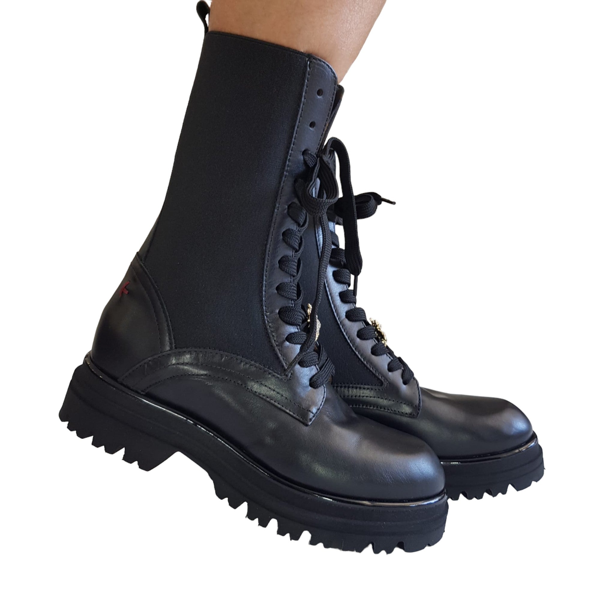 Gio+ Tronchetto Anfibio Donna Pelle ed elastico Nero fondo gomma alto 5 cm. Rif.52