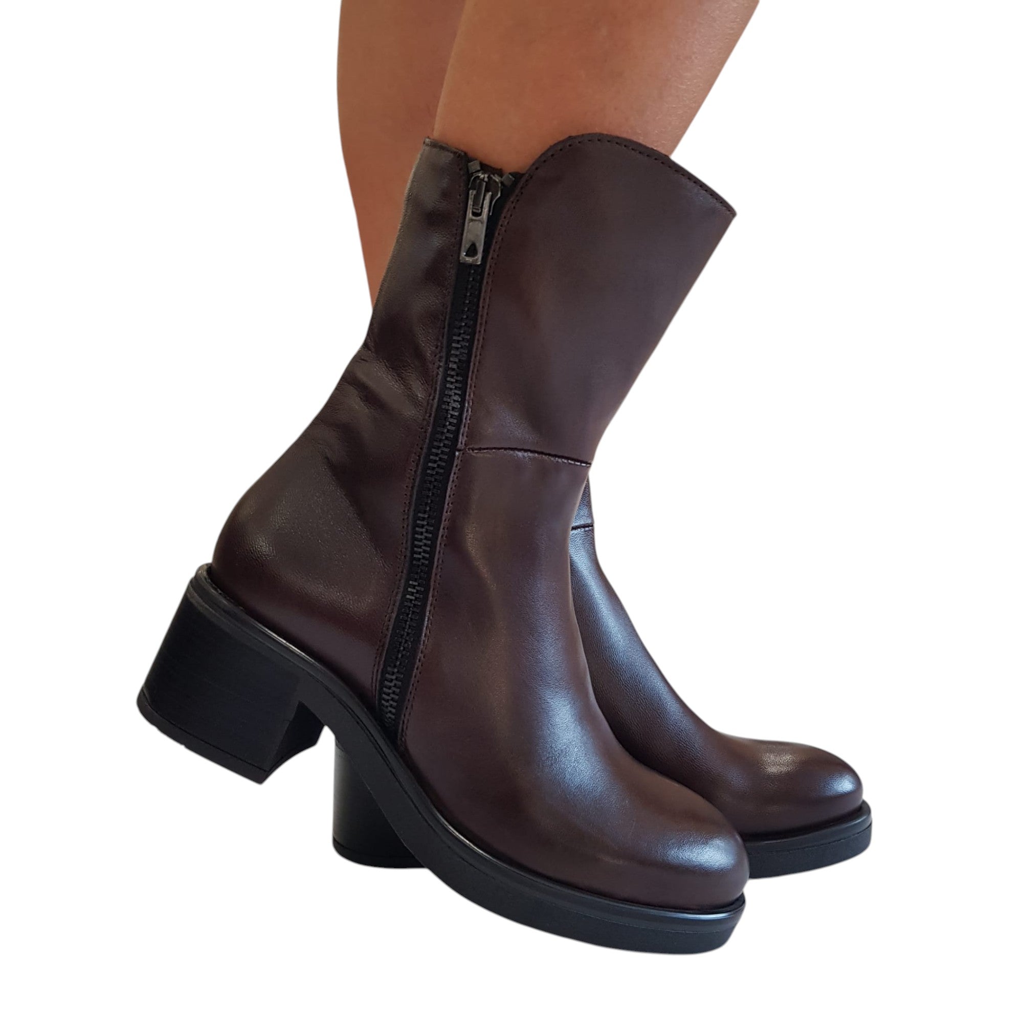 Les Poèmes Tronchetto Donna fondo gomma tacco alto alto 5,5 cm plateau 2 cm Pelle Marrone Rif.942