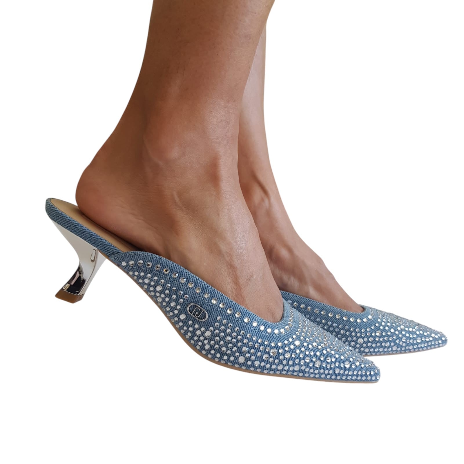 Liu-Jo Sabot Donna jeans denim con strass cristallo tacco alto 6 cm. Rif.864