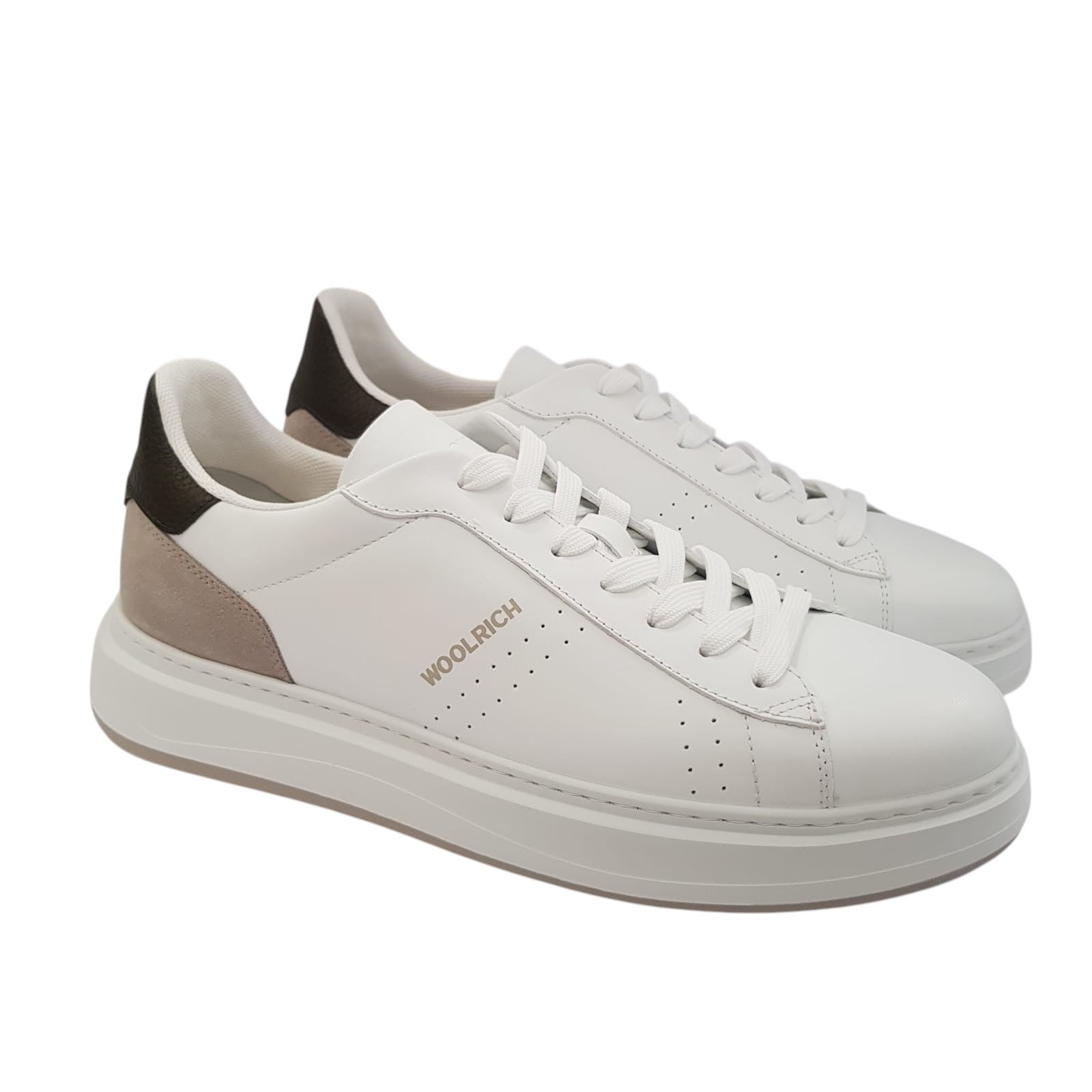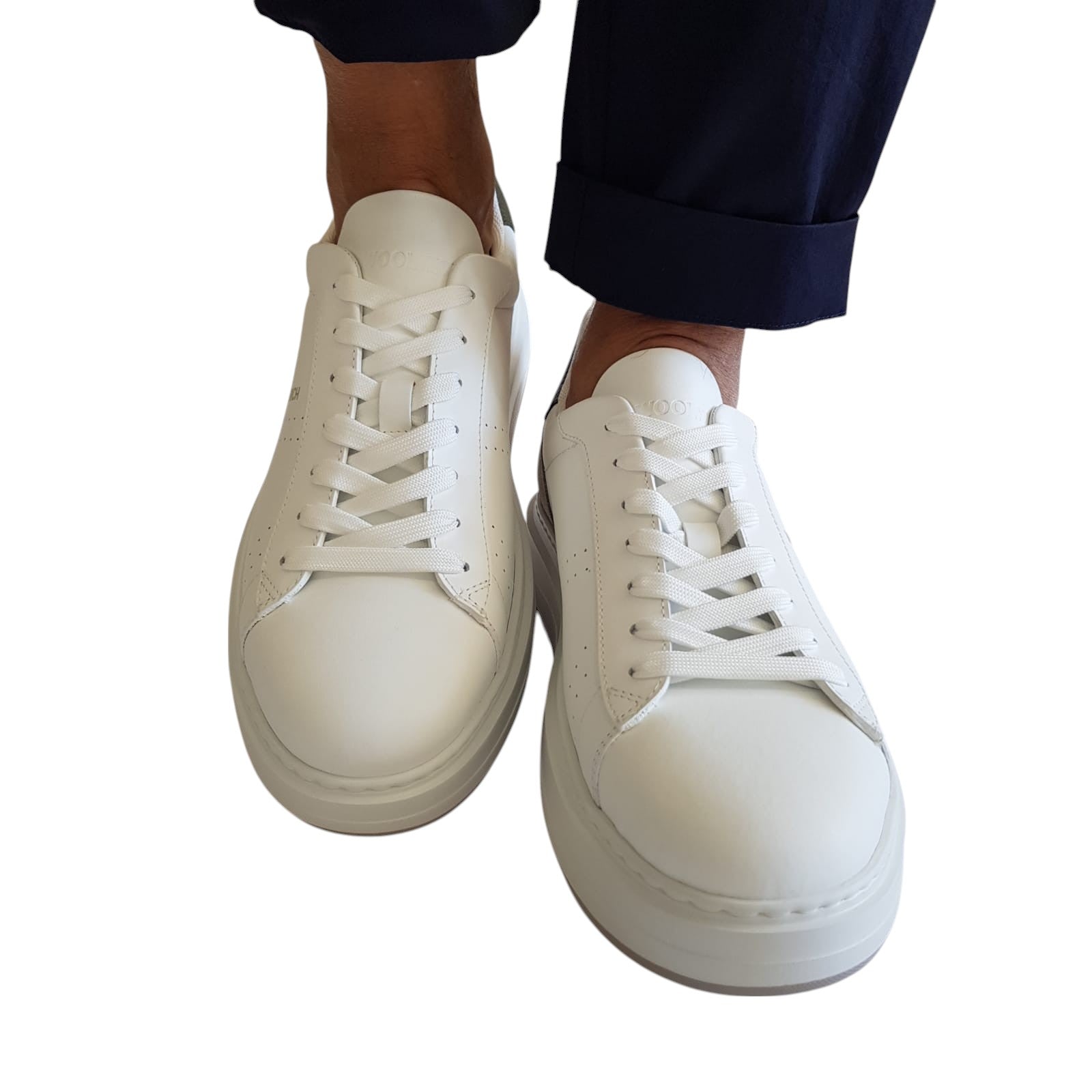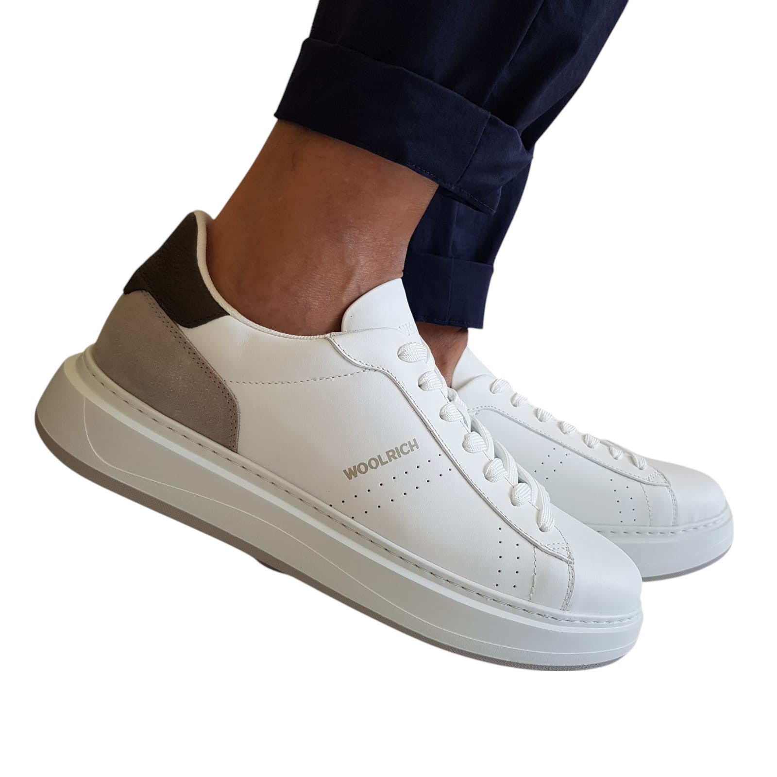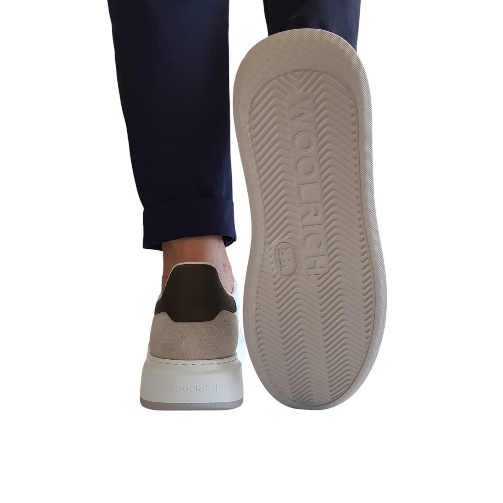 Woolrich Sneakers Uomo Pelle Bianco e Verde fondo gomma alto 4 cm. Rif.42