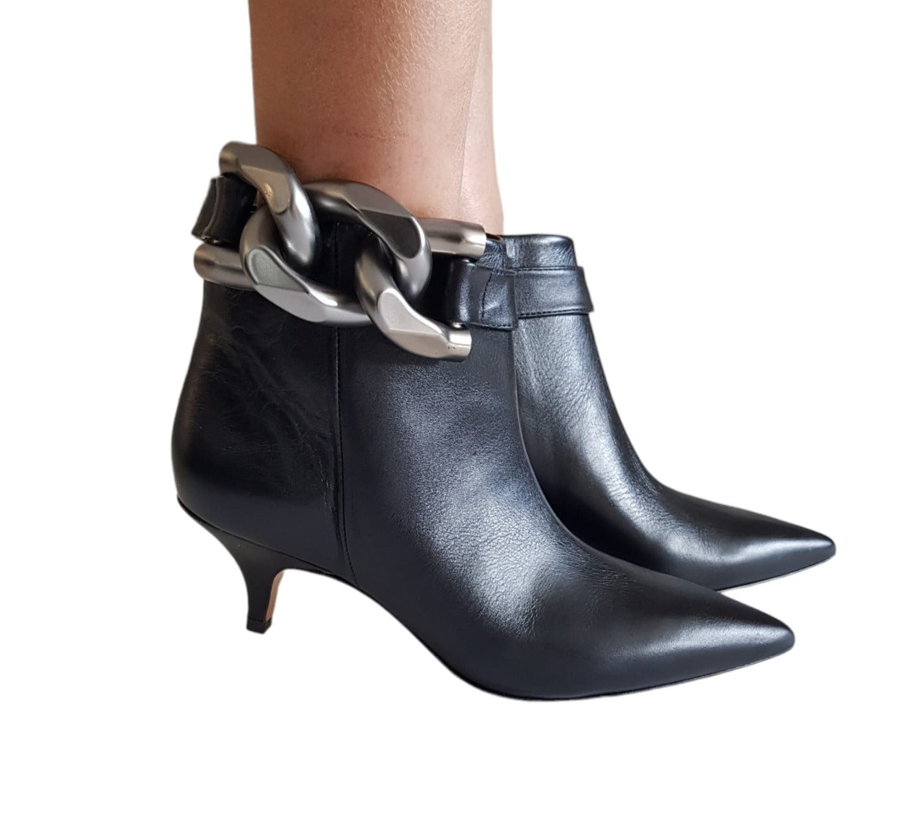 Vicenza Tronchetto tacco alto 6 cm pelle Black accessorio catena color Ferro rif. 95