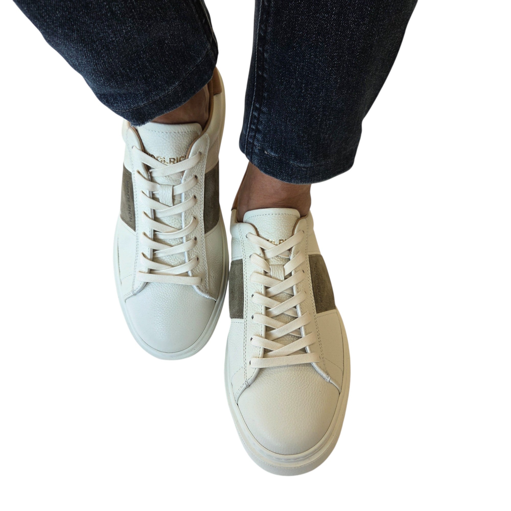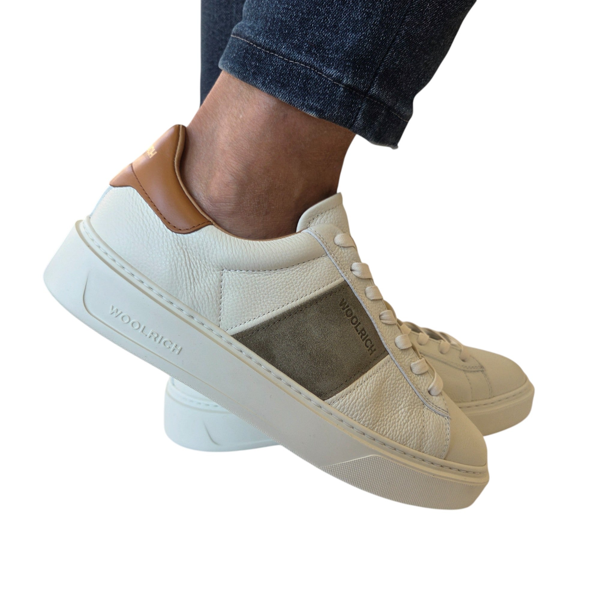 Woolrich Sneakers Uomo Pelle Panna camoscio Muschio fondo gomma alto 4 cm. Rif.51