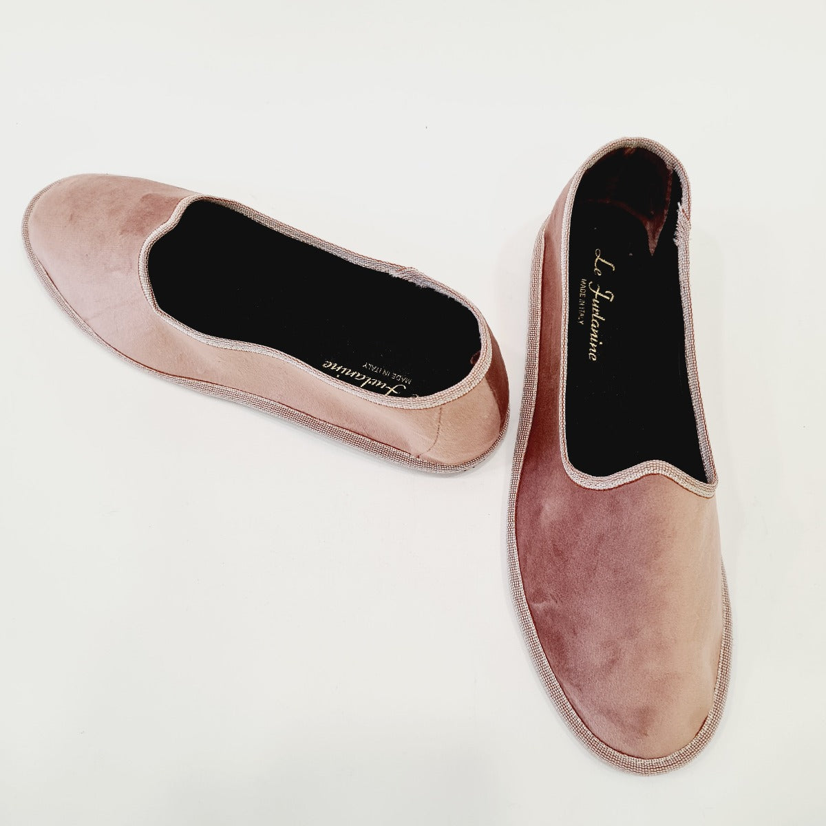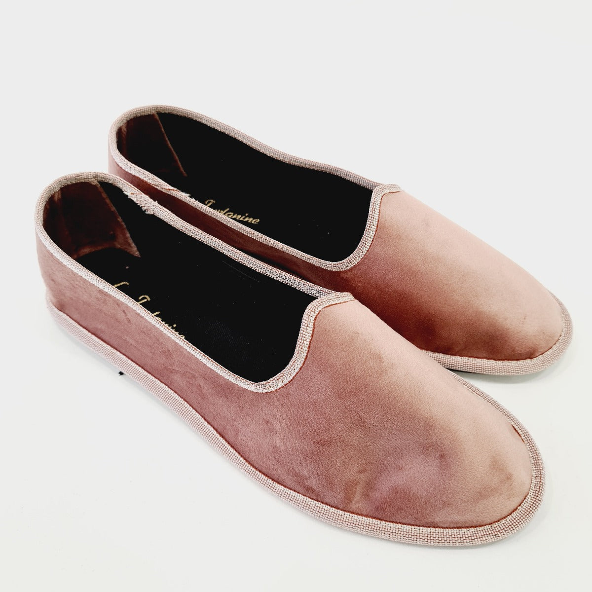 Le Furlanine mocassino stile "FRIULANE" ciniglia rosa fondo gomma rif.3
