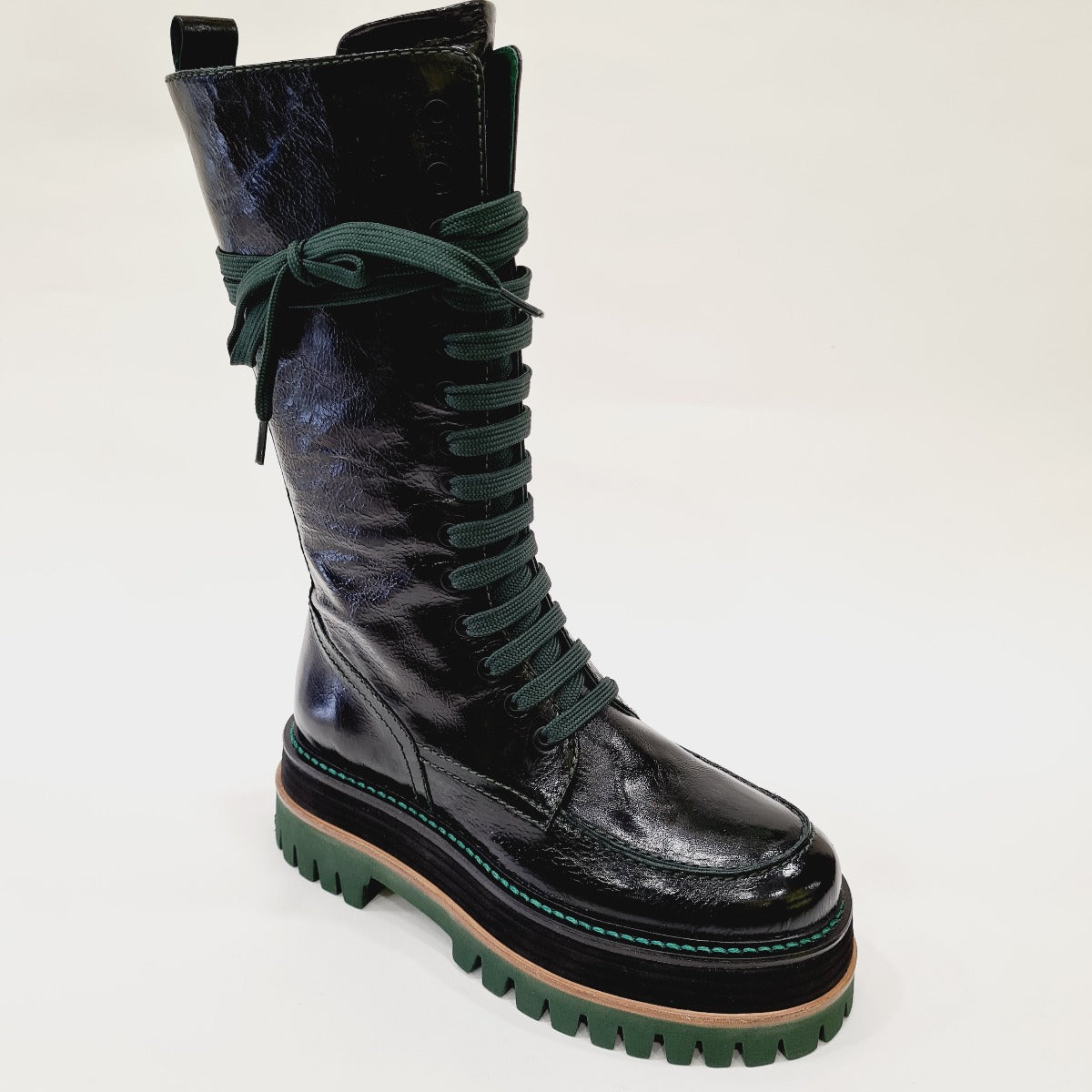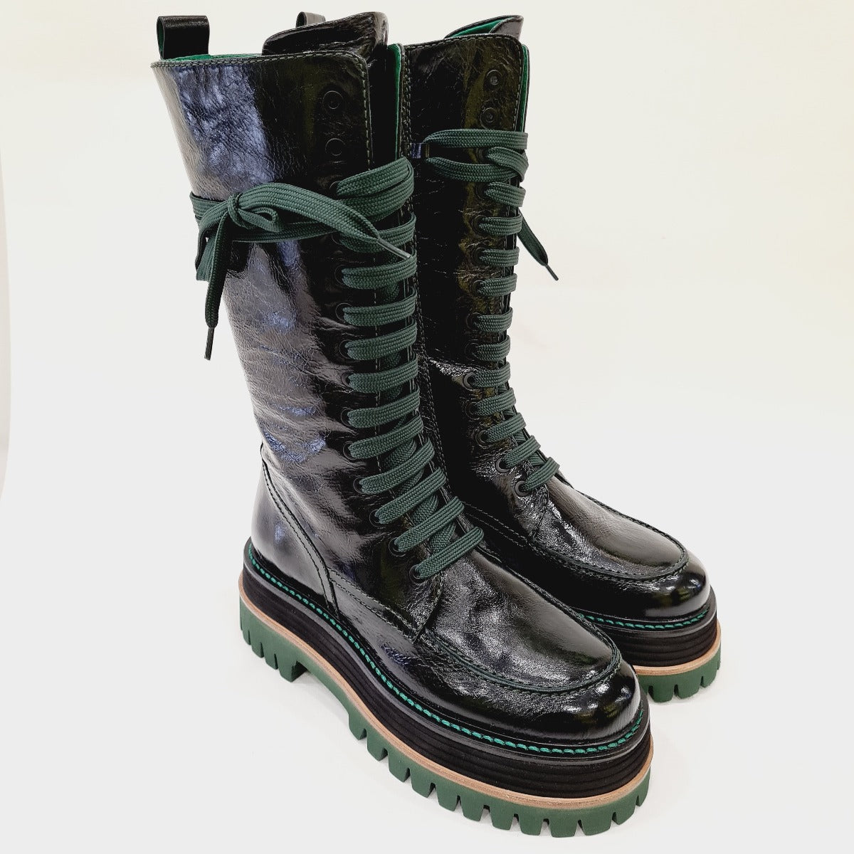 Les Poèmes stivale anfibio fondo gomma tacco alto alto 6 cm carro armato 5 cm pelle black rif.726