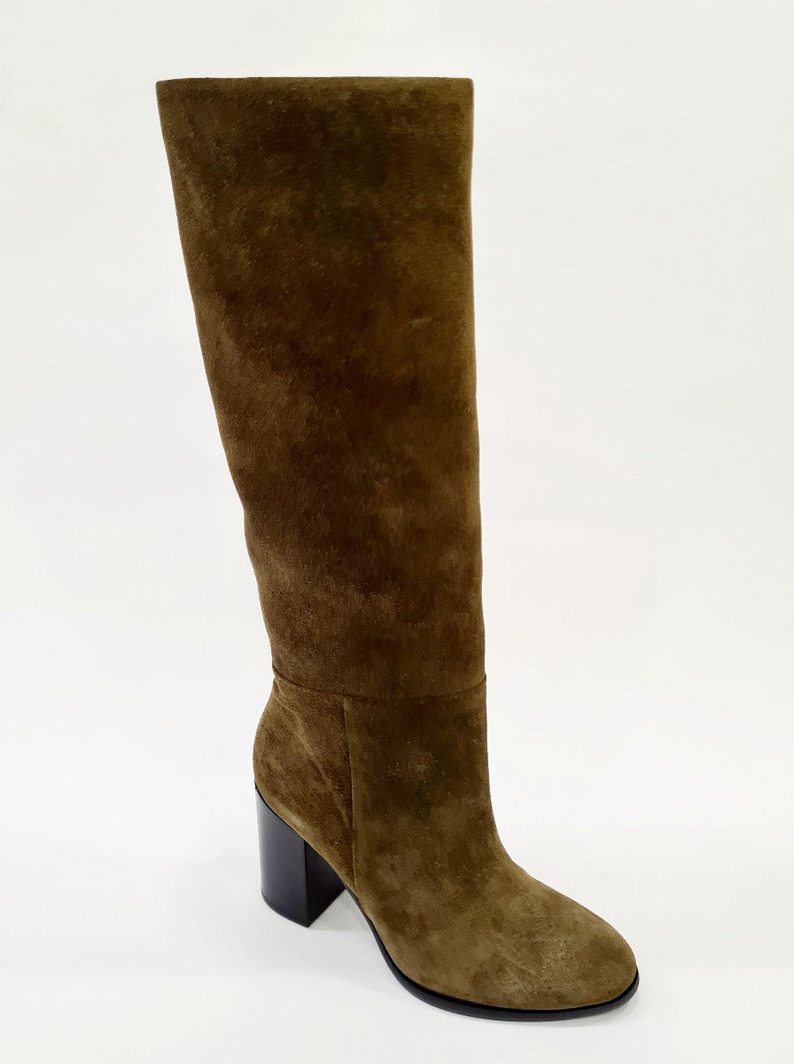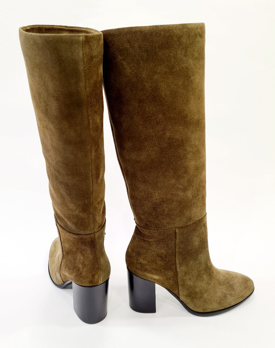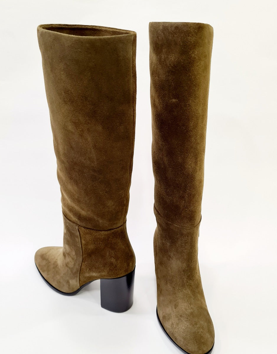 Lorenzo Mari stivale alto zeppa fondo gomma 7,5cm camoscio verde oliva art.748