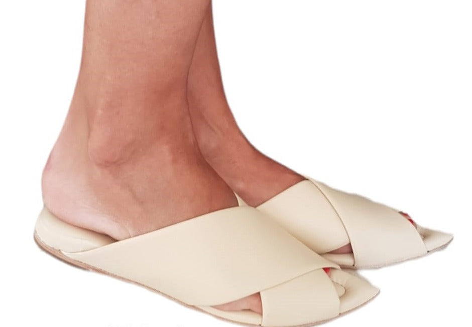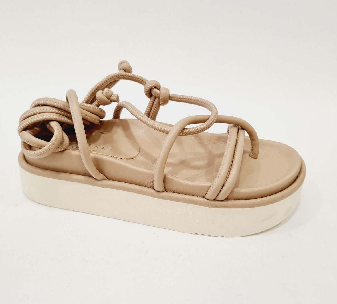 Equitare sandalo infradito alla schiava zeppa alta 5 cm. pelle Beige rif.10