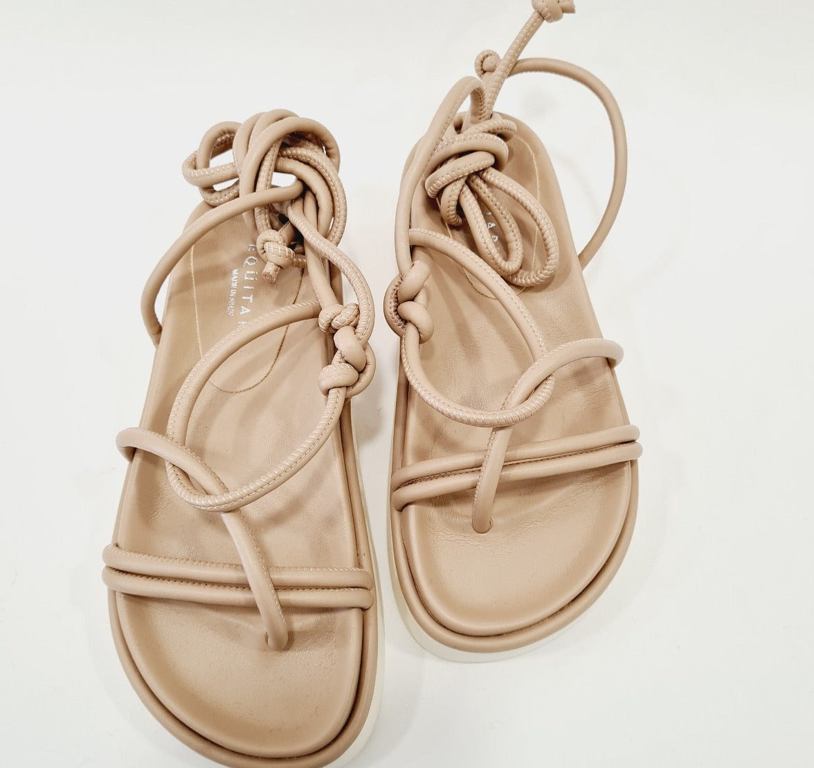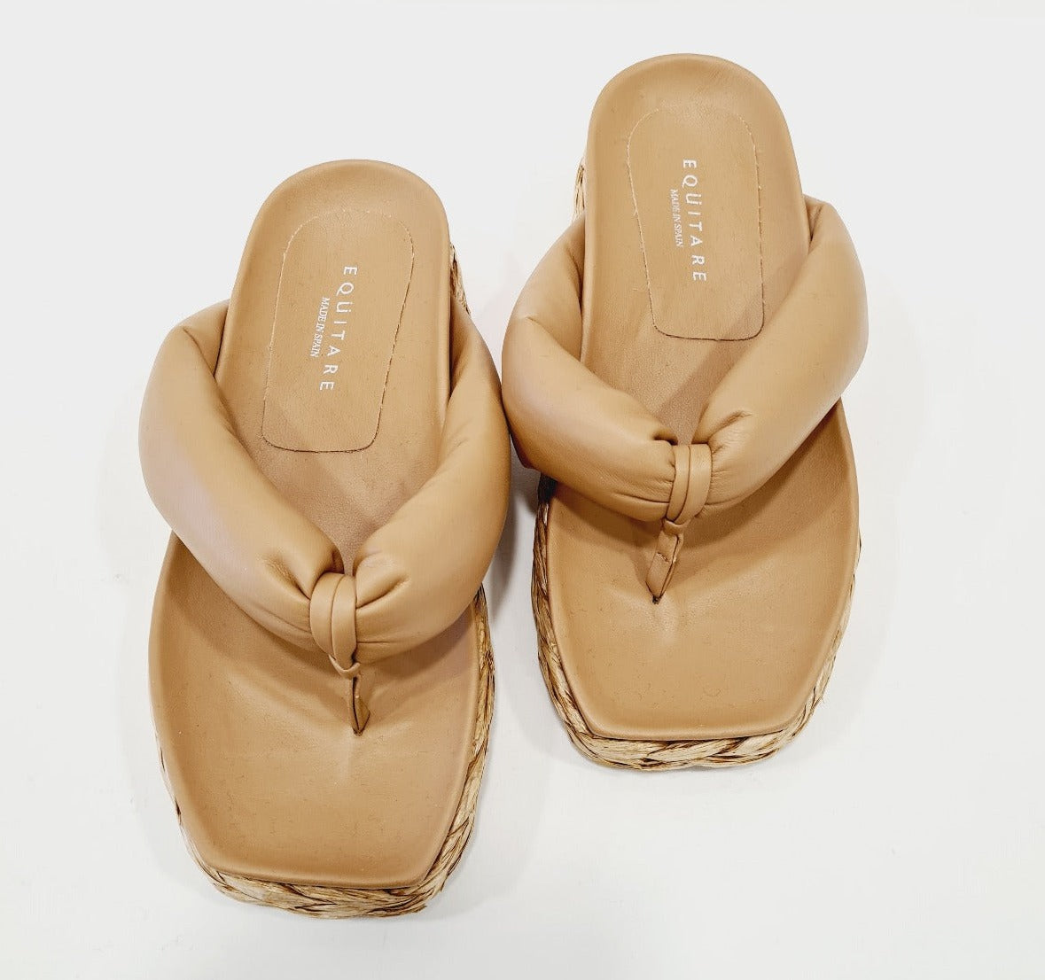 Equitare sandalo infradito zeppa fondo gomma alta 4 cm. pelle beige rif.13