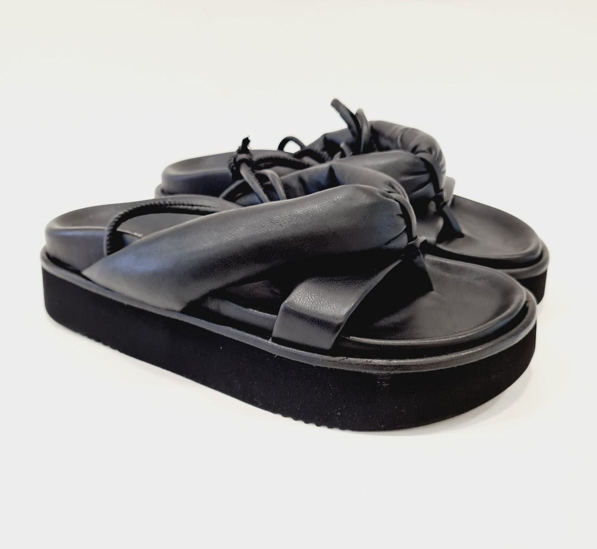 Equitare sandalo infradito alla schiava zeppa alta 5 cm. pelle Nero rif.11