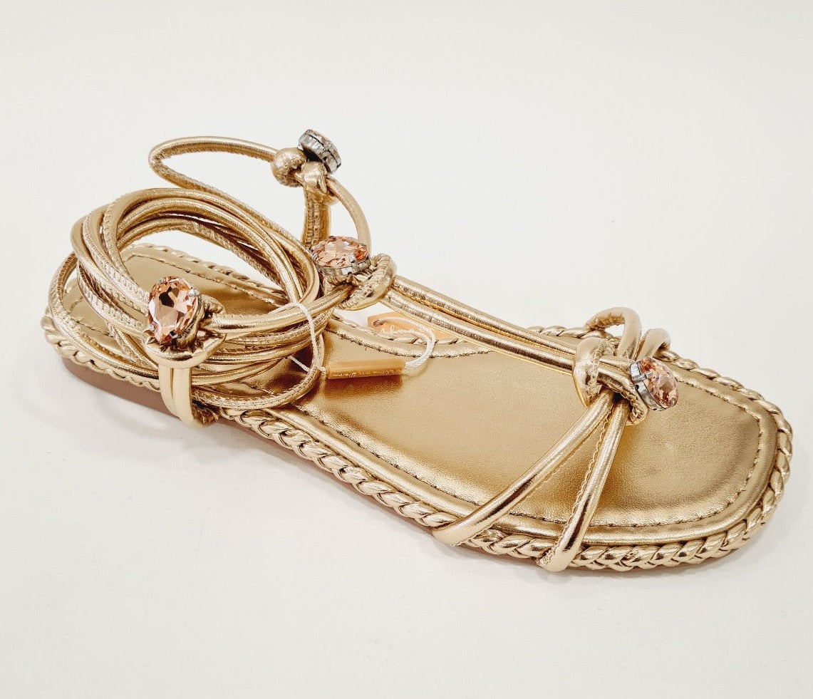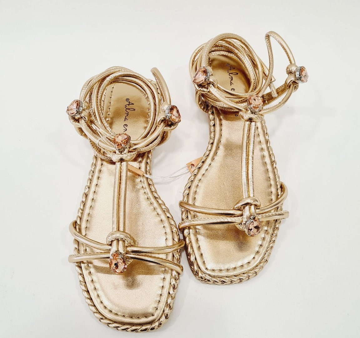 Alma en Pena sandalo alla schiava pelle rame tacco alto 3 cm pietre rame rif.53