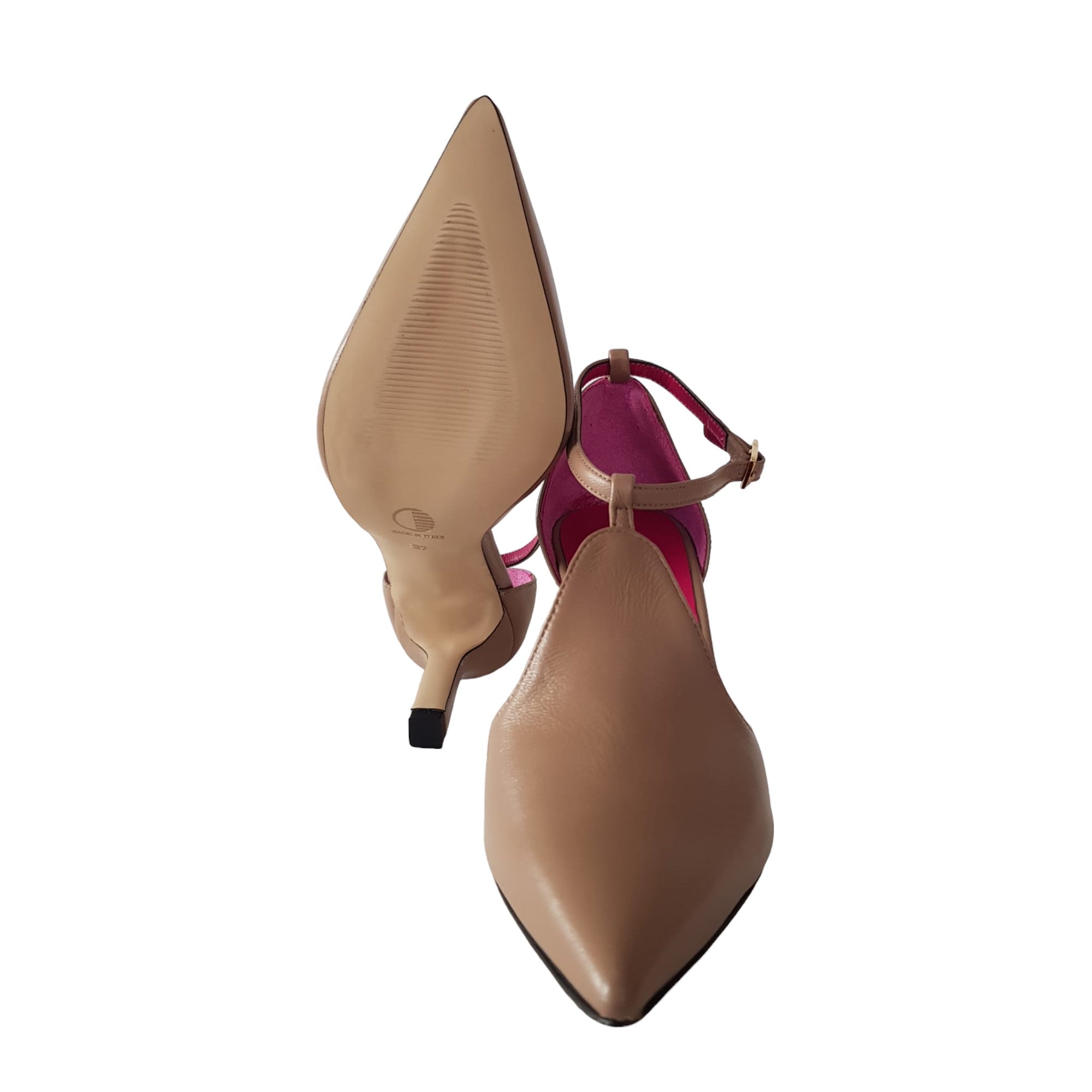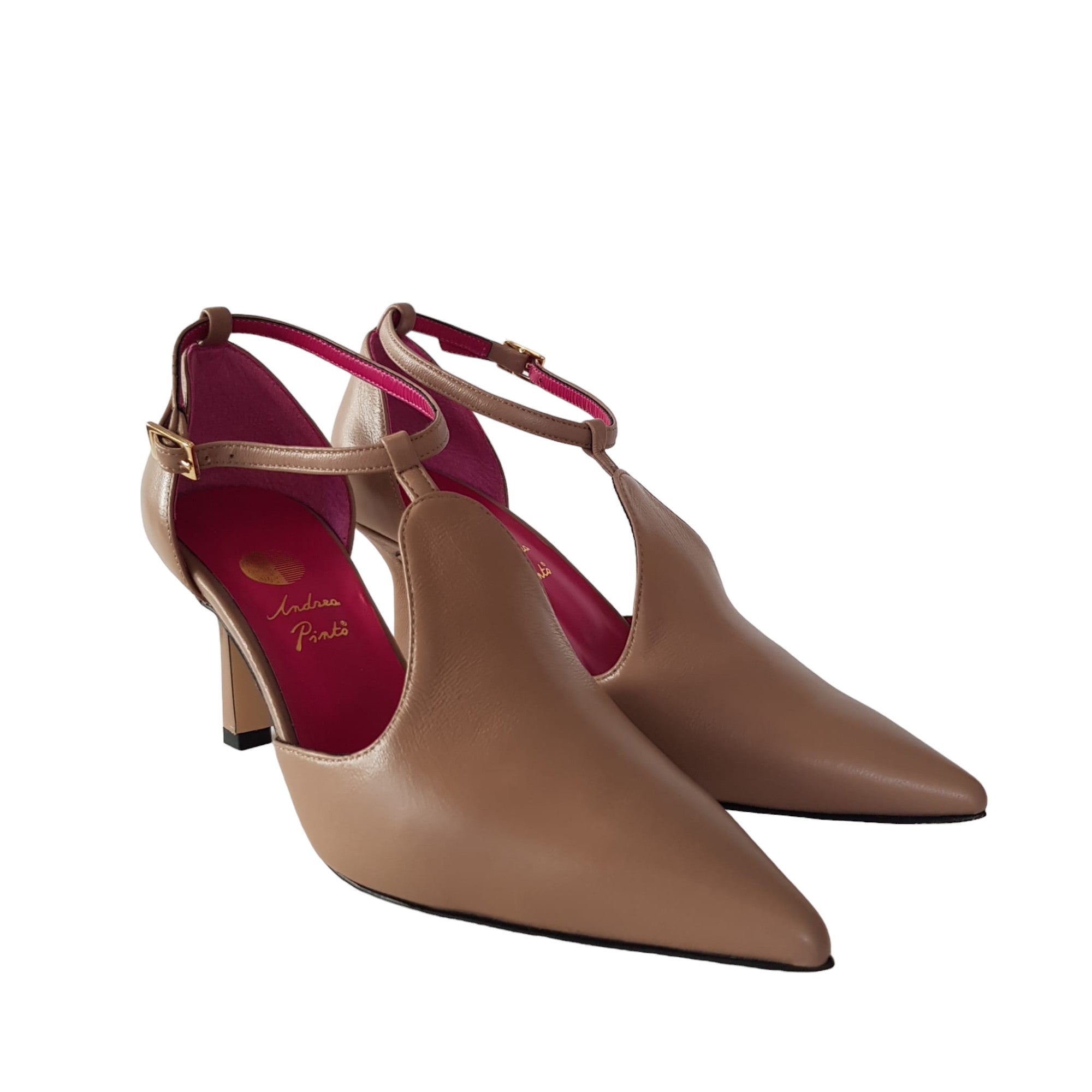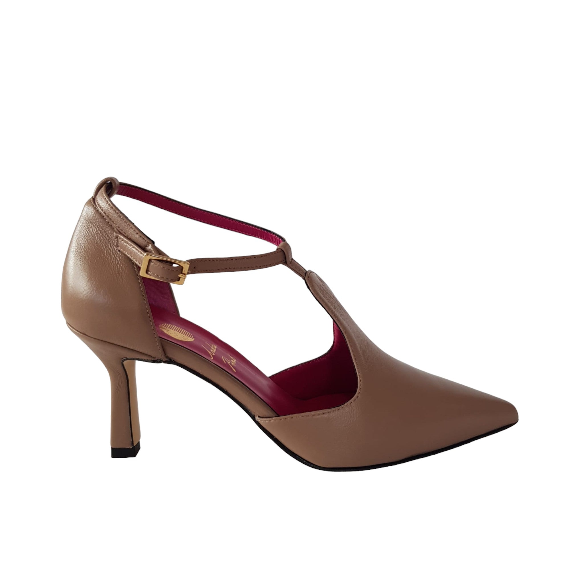 Andrea Pinto Décolleté accollato Donna Pelle Tortora cinturino a T tacco 7,5 cm.Rif.110