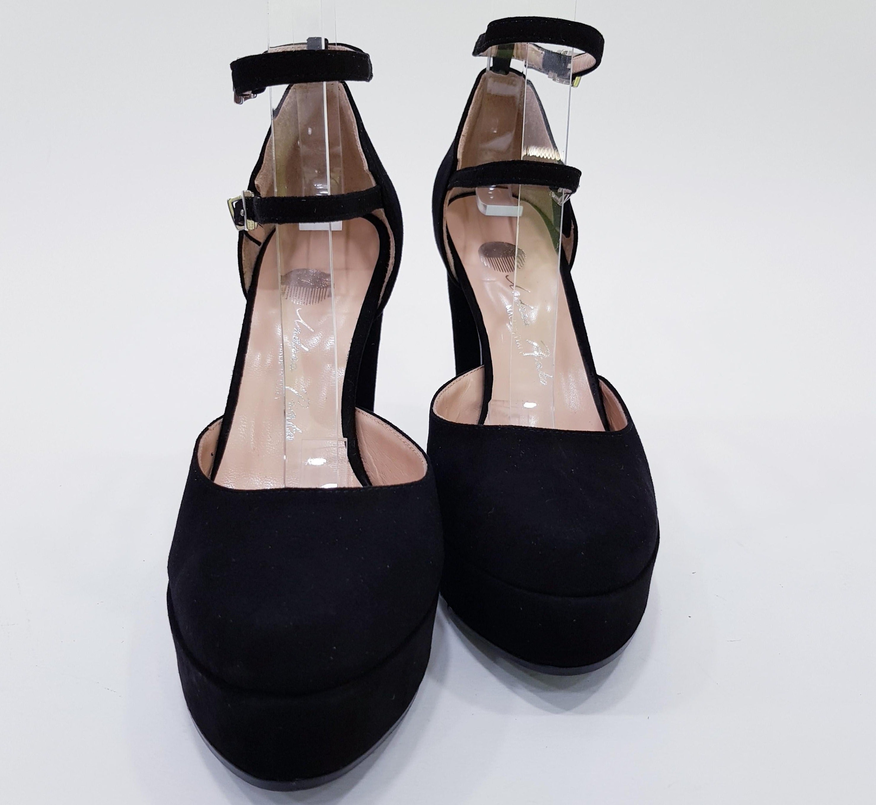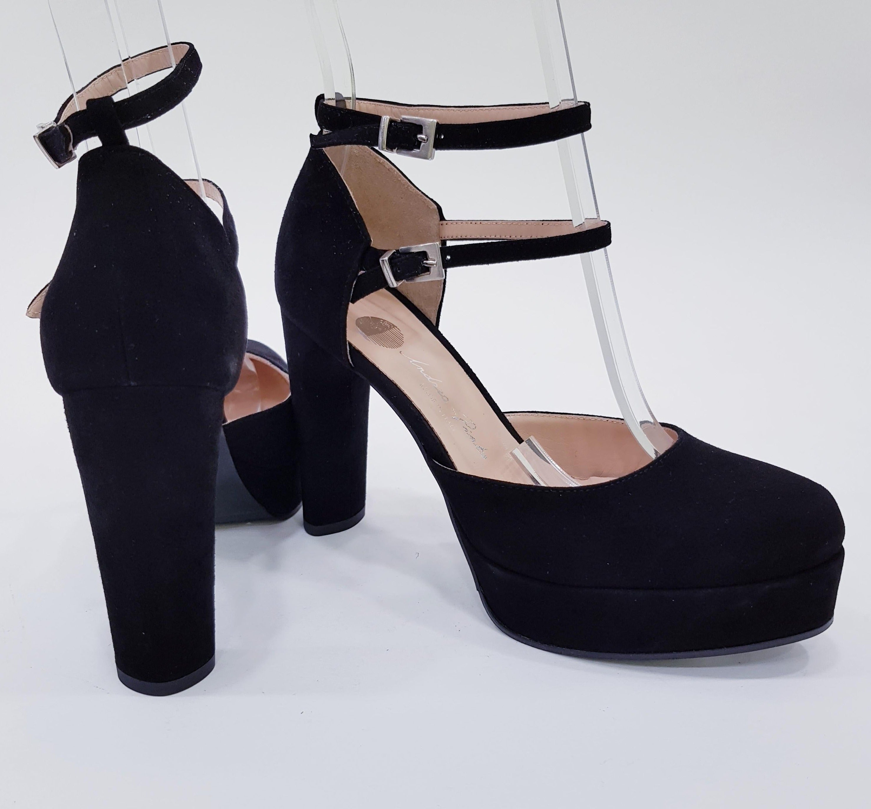 ANDREA PINTO DECOLTE' DOPPIO CINTURINO TACCO ALTO 10 CM. PLATEAU 2 CM.CAMOSCIO NERO RIF.864