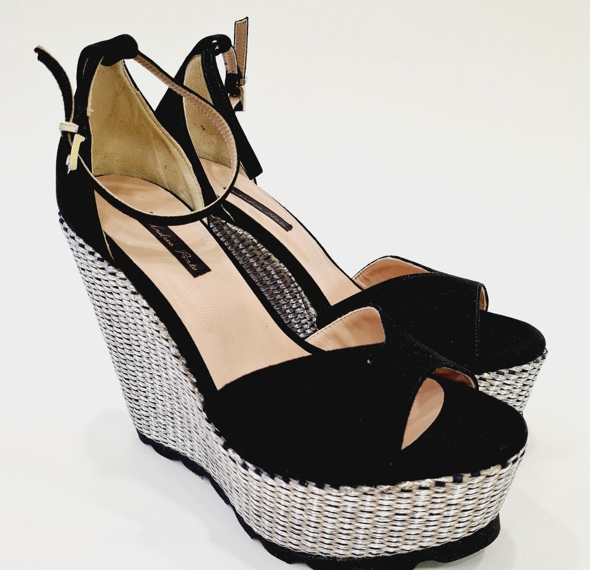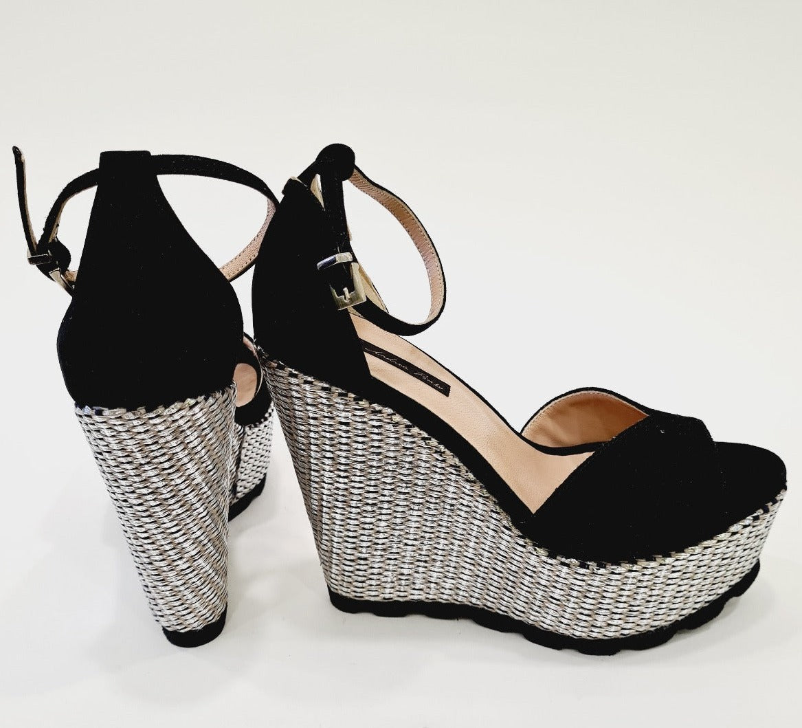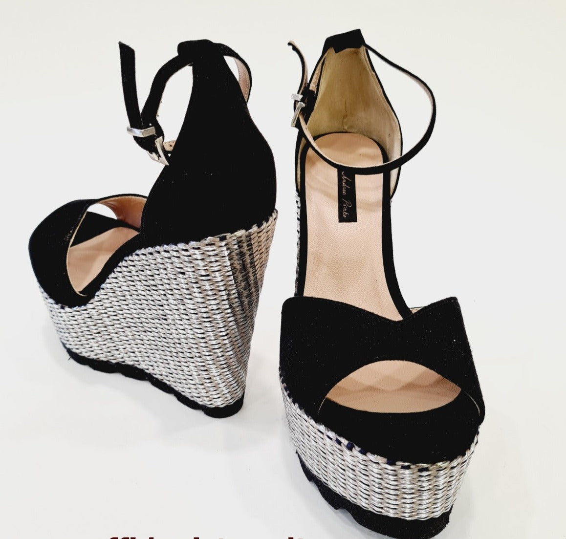 Andrea Pinto sandalo zeppa raffia argento alta 13cm plateau 5 cm camoscio black art.521