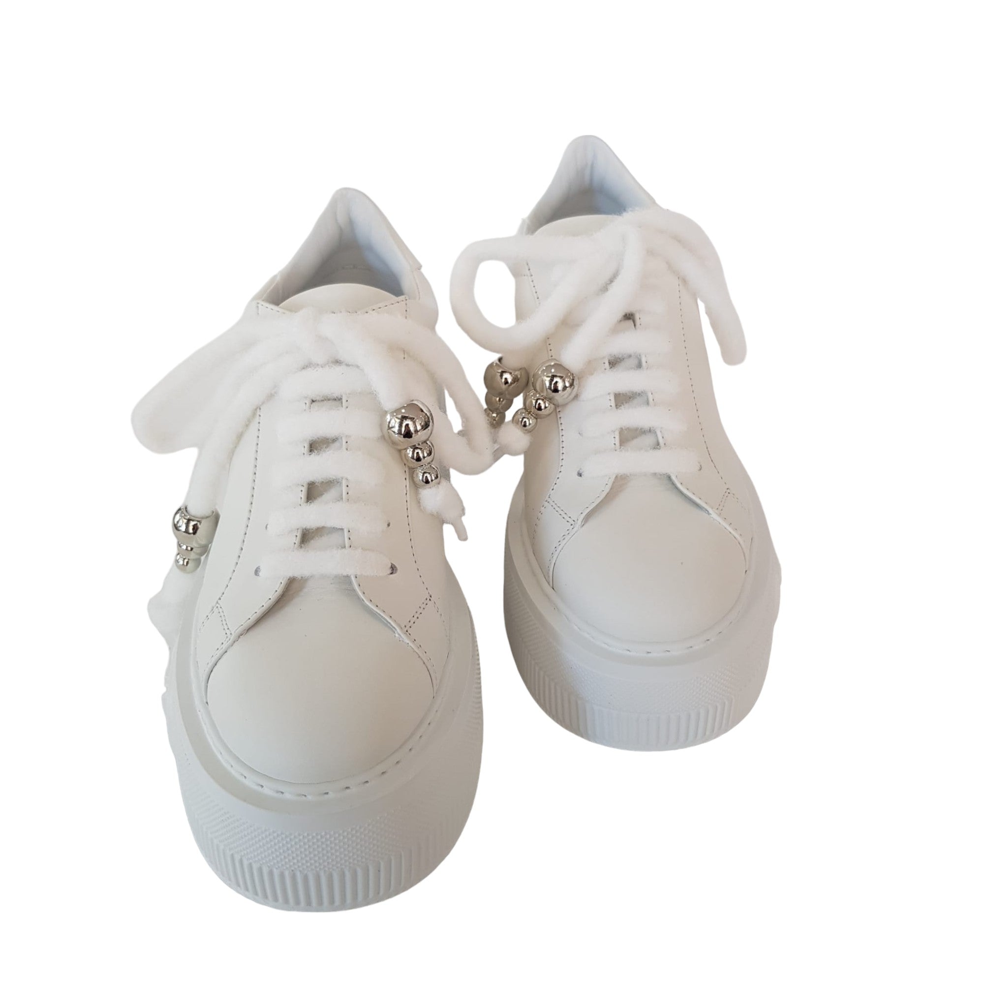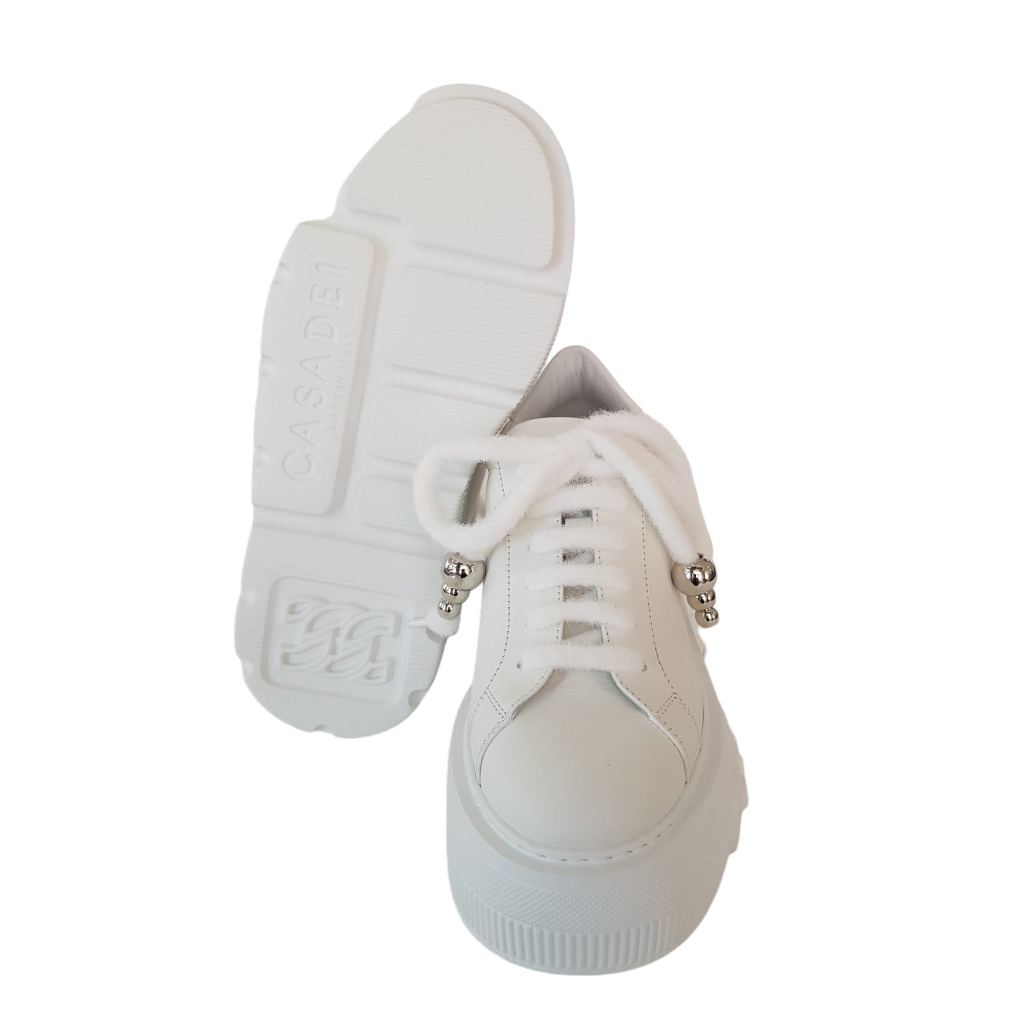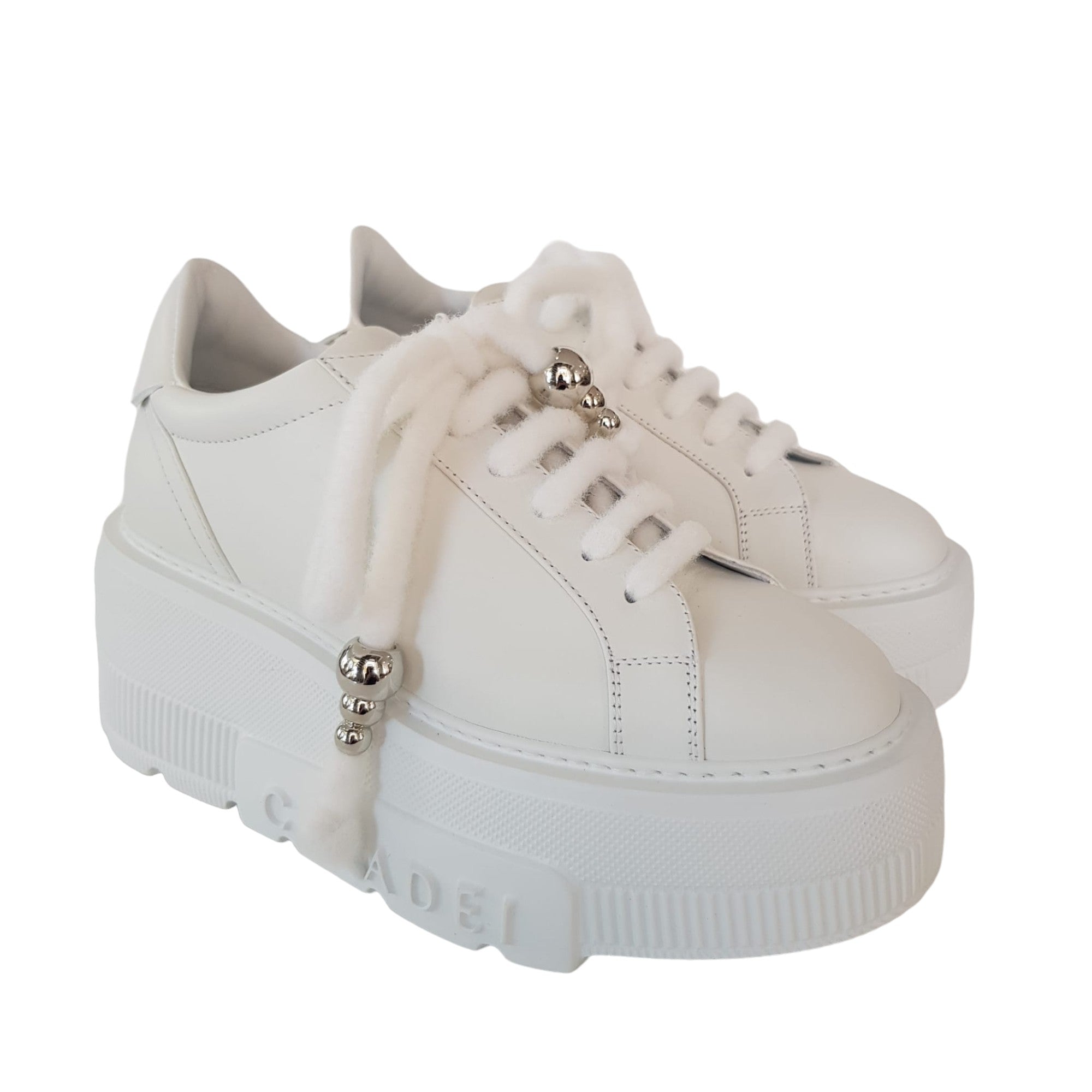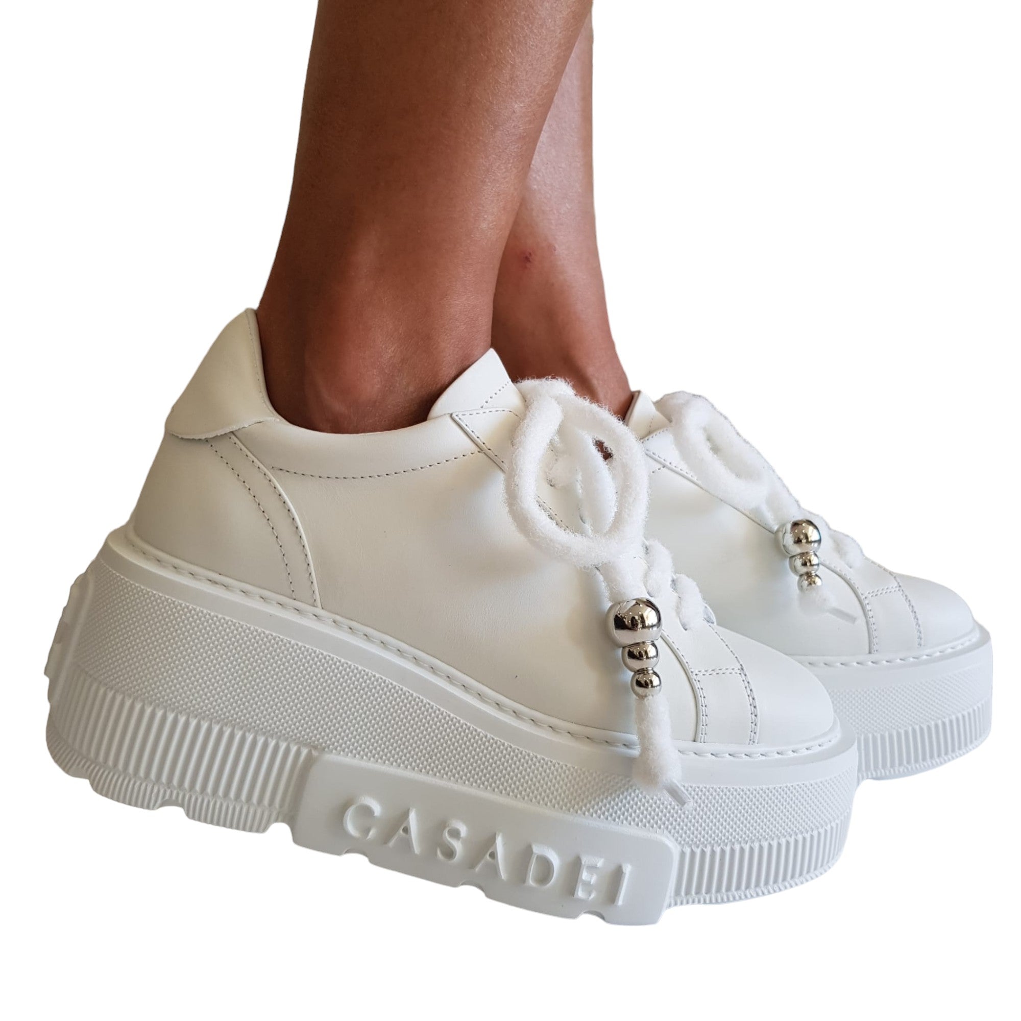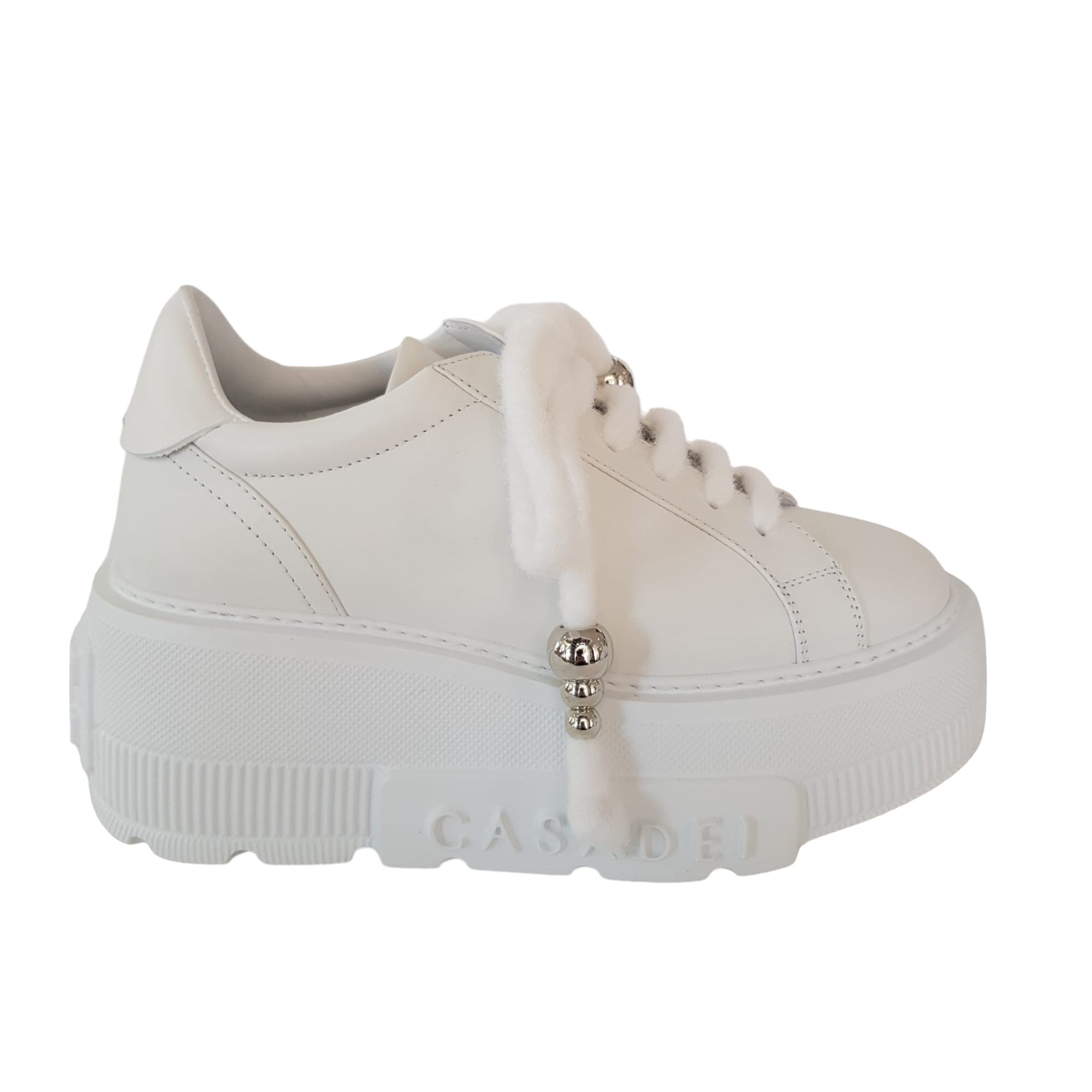 Casadei Sneakers Donna pelle bianca comodo fondo Nexus in materiale Extra-leggero zeppa 8 cm Rif.157