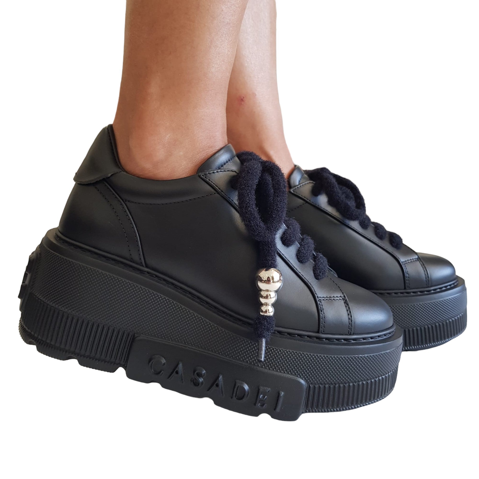 Casadei Sneakers Donna pelle black comodo fondo Nexus in materiale Extra-leggero zeppa 8 cm Rif.156