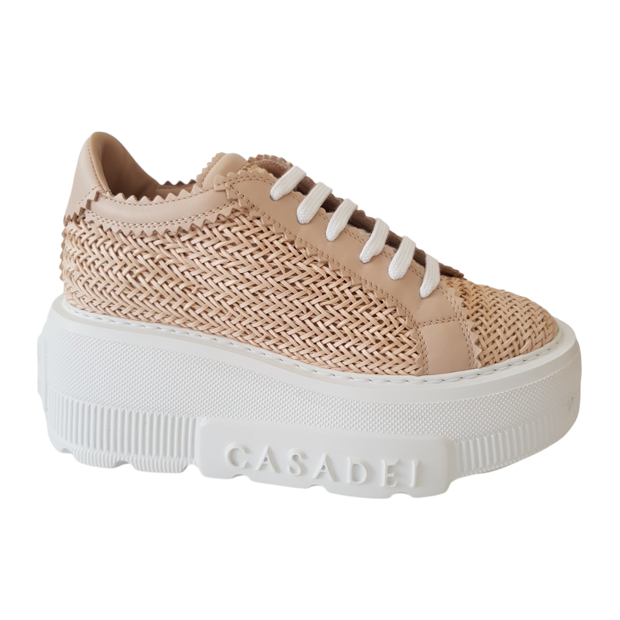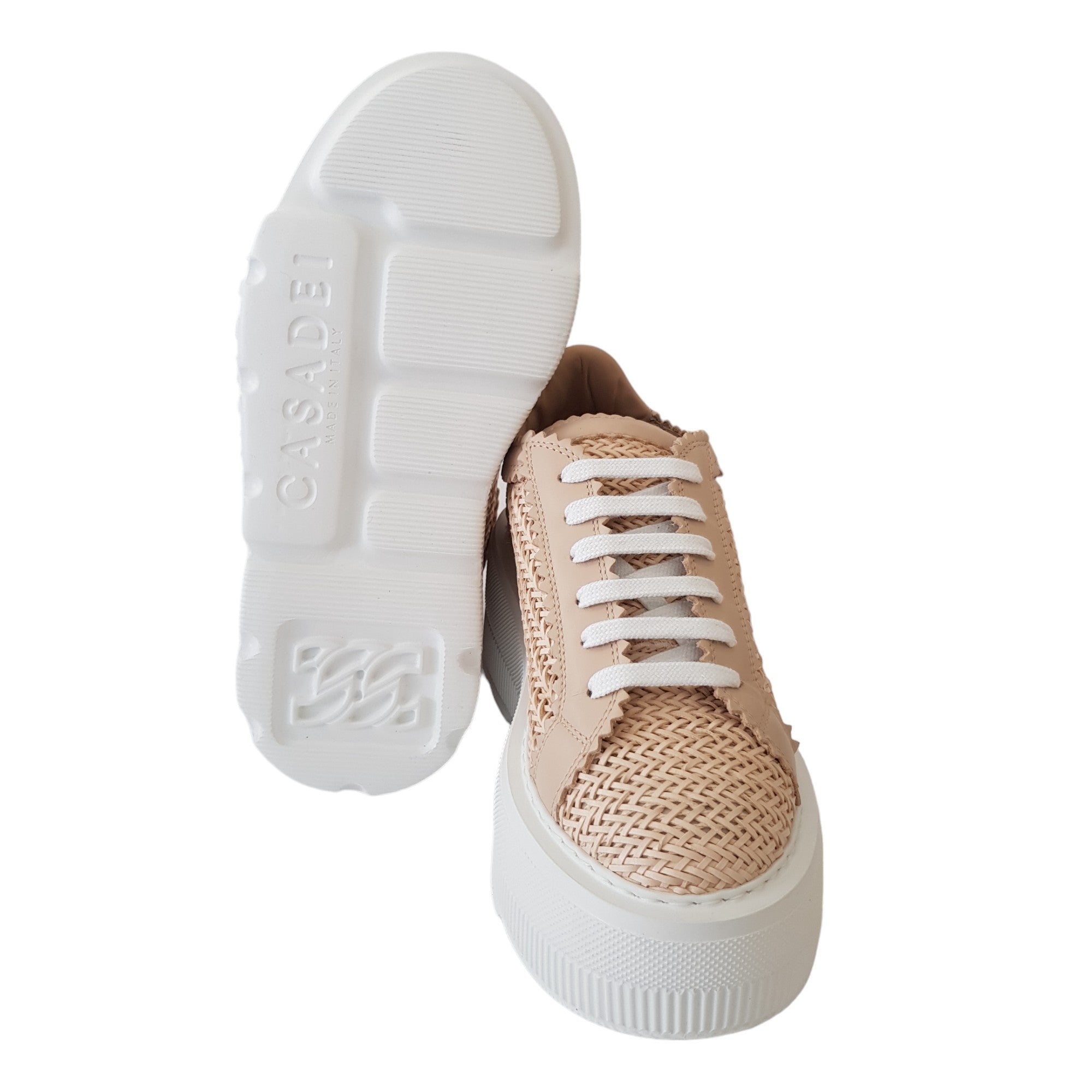 CASADEI SNEAKERS DONNA ZEPPA ULTRA LEGGERA CON LOGO CASADEI ESTERNO E LOGO C-CHAIN IMPRESSO SOTTO LA SUOLA. ZEPPA 8 CM. 100% MADE IN ITALY.
