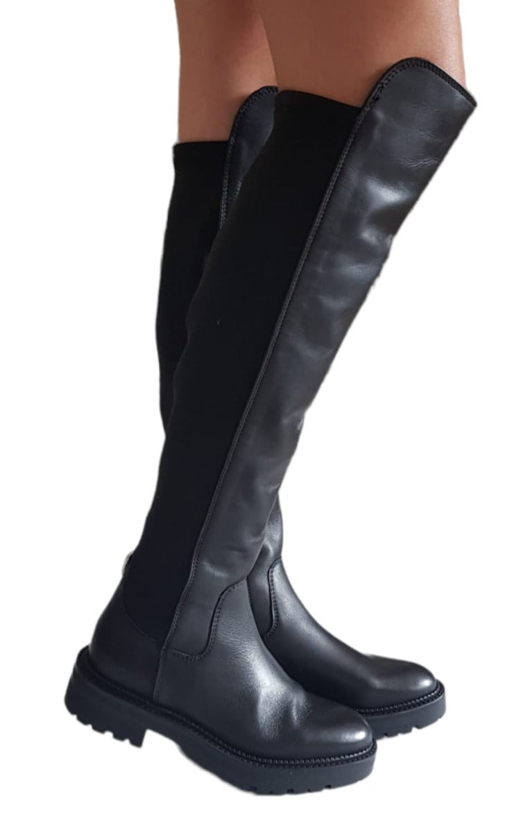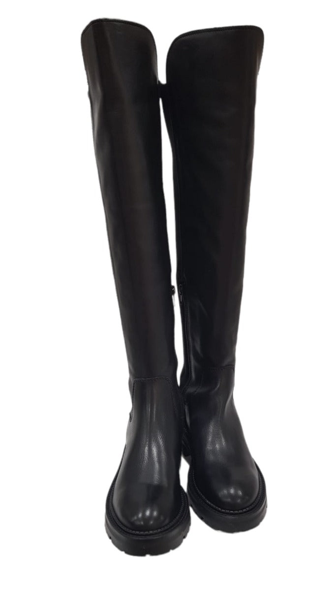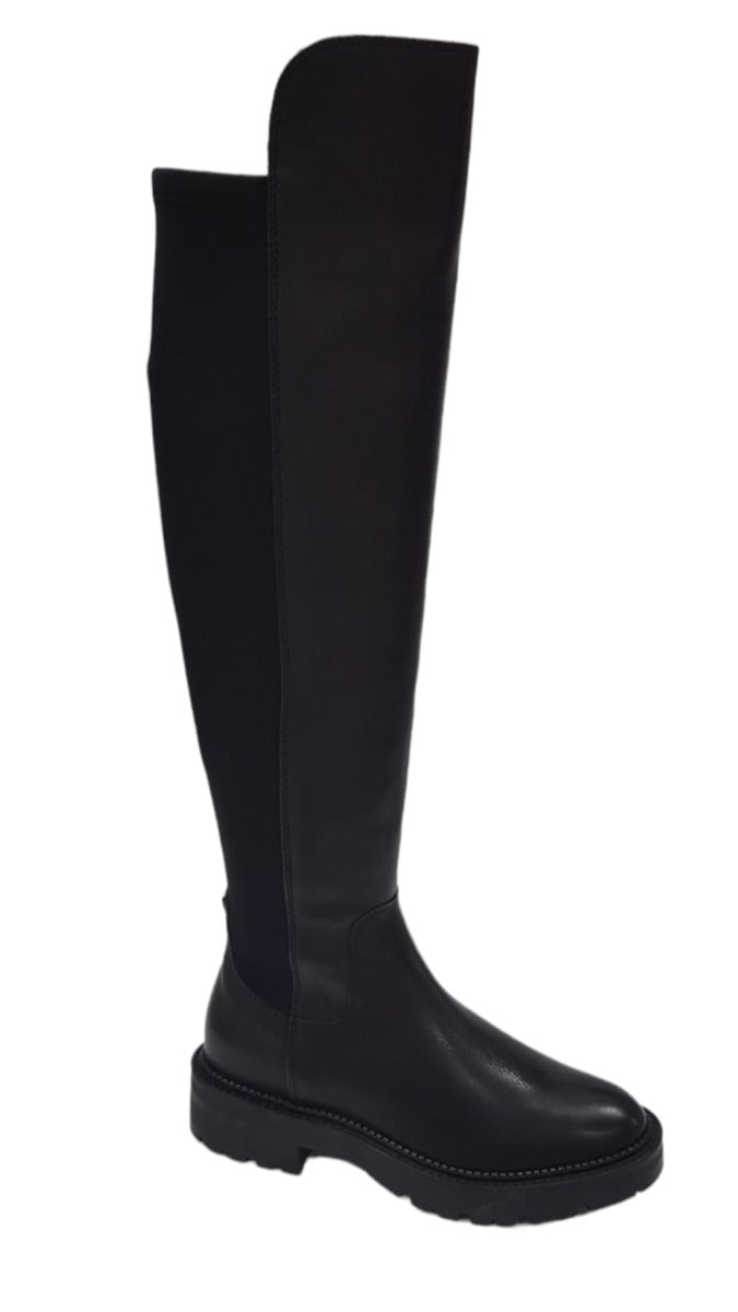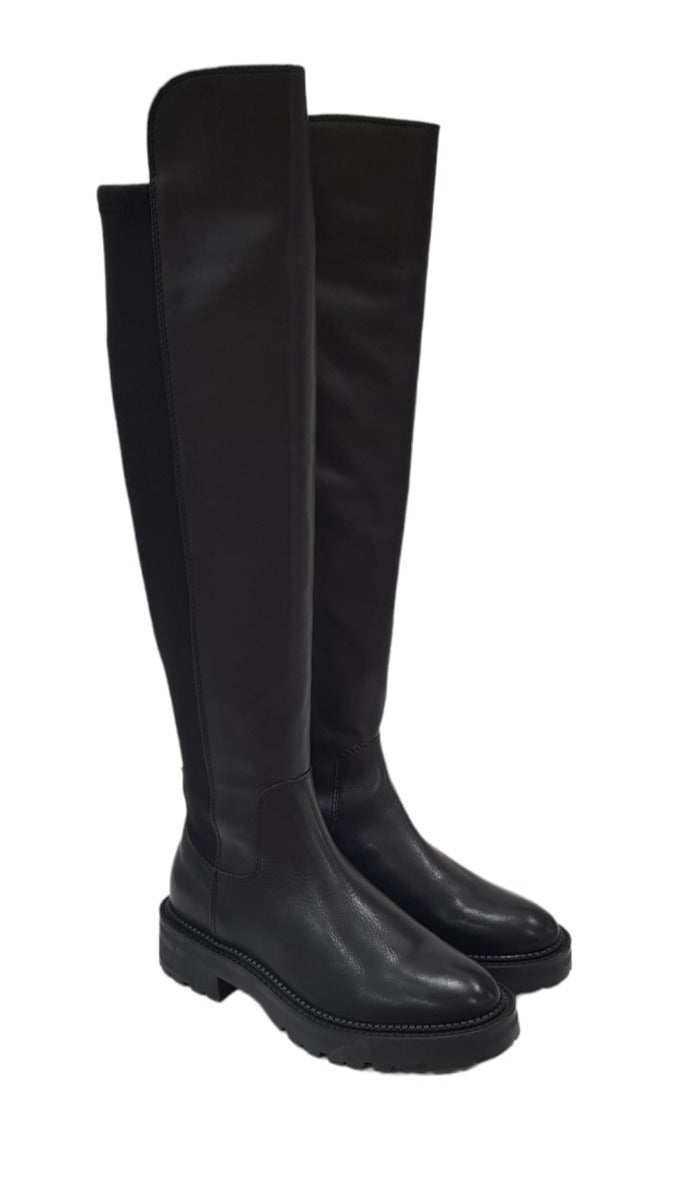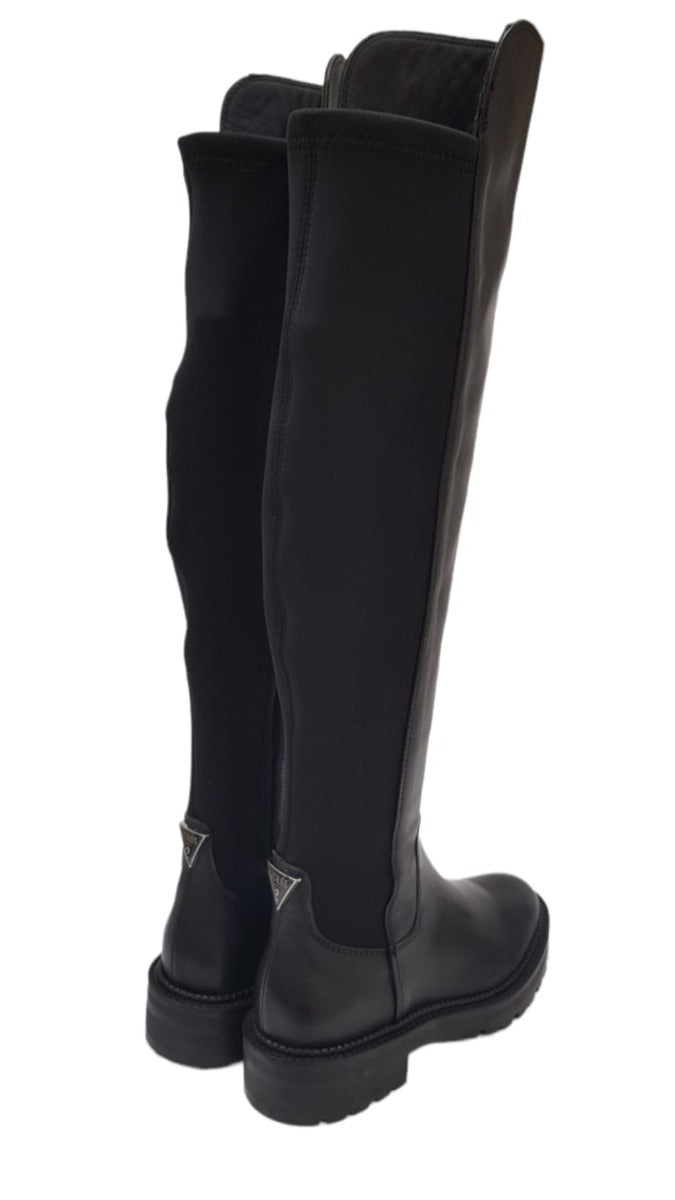 Guess stivale alto sopra il ginocchio tacco alto 4 cm. pelle e tessuto elasticizzato Blak Black rif.G670