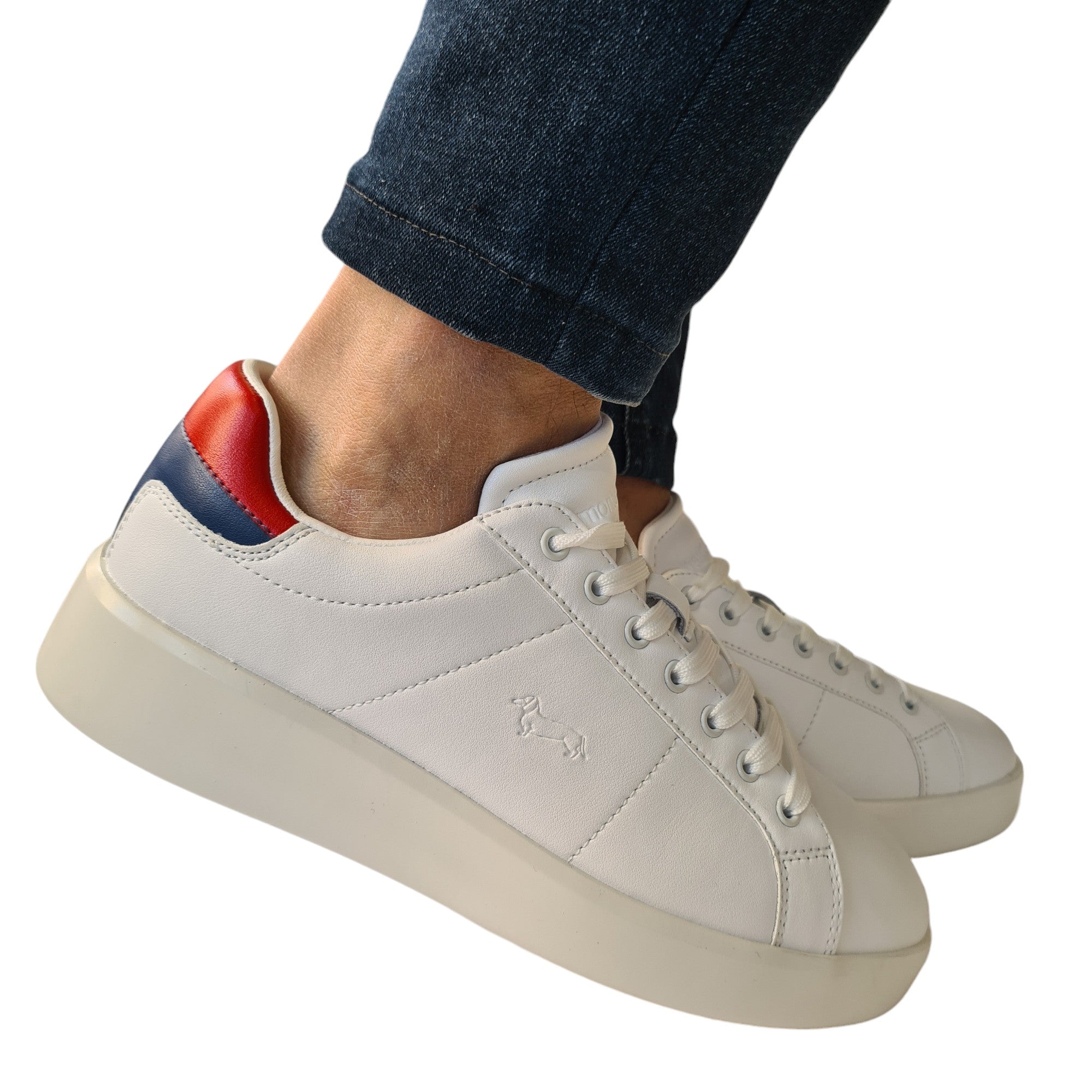 Harmont & Blaine Sneakers Uomo Pelle Bianco-Rosso Fondo Gomma alto 4 cm Rif.82