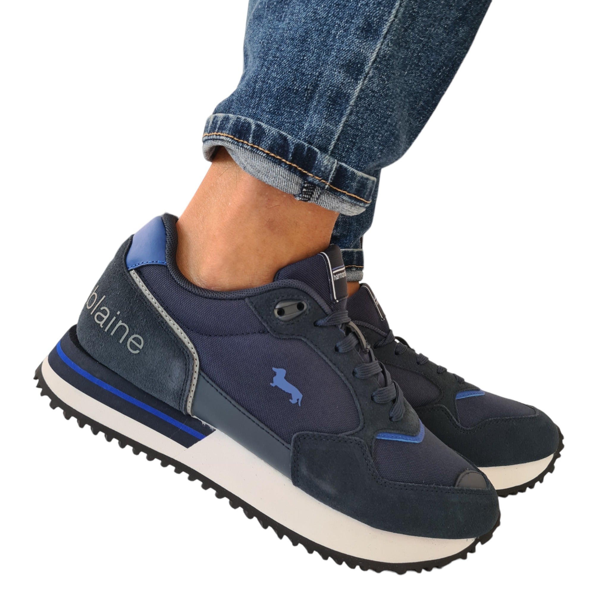 Harmont & Blaine Sneakers Uomo Pelle Blu Fondo Gomma alto 3 cm rif.80