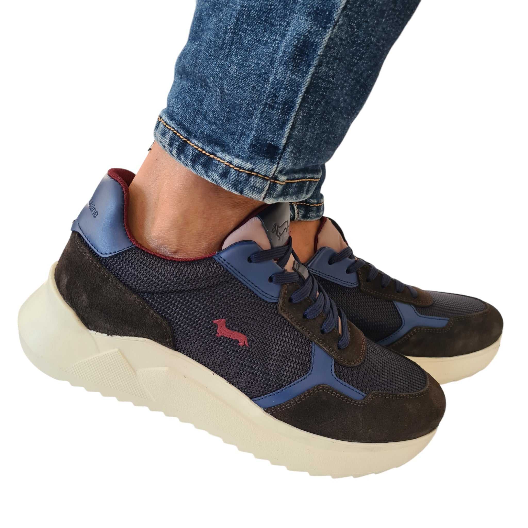 Harmont & Blaine Sneakers Uomo Camoscio Testa di Moro e Blu Fondo Gomma alto 3 cm Rif.78