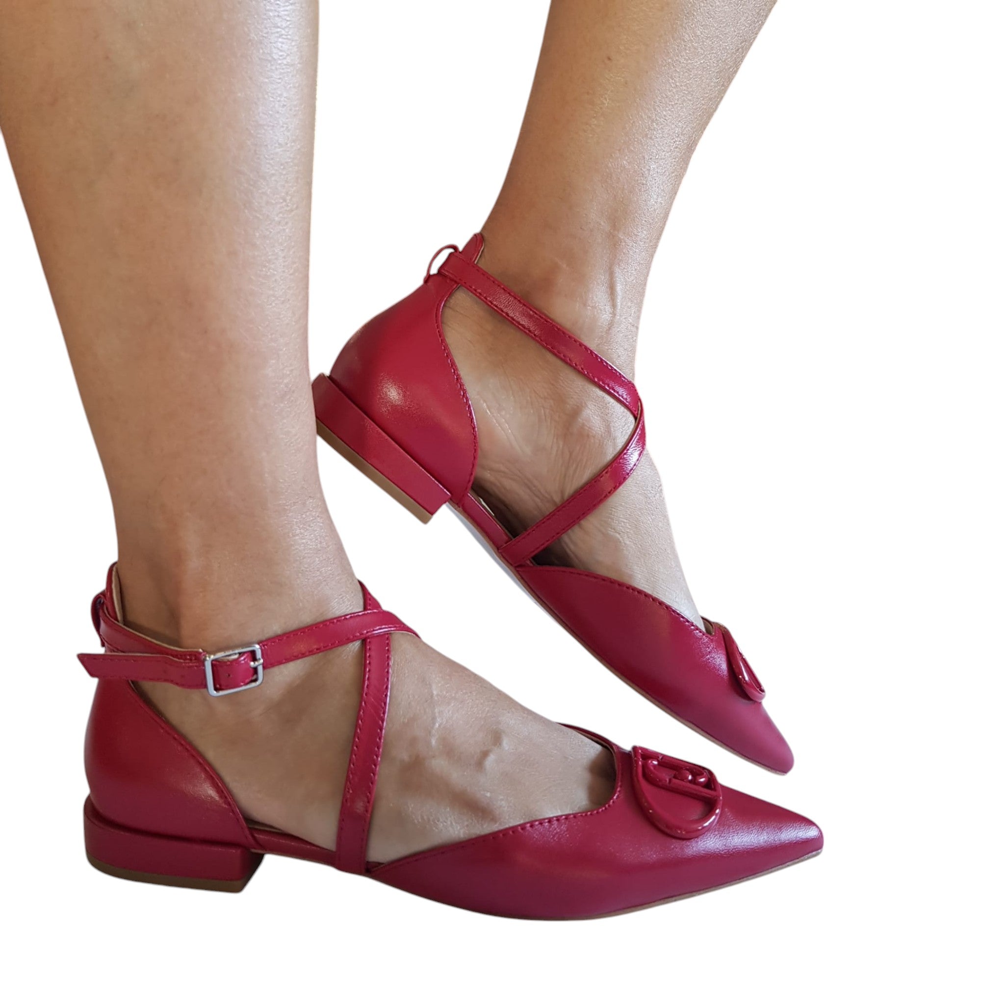 Liu-Jo Ballerina Donna Pelle Rosso con cinturino incrociato fondo gomma Rif.849