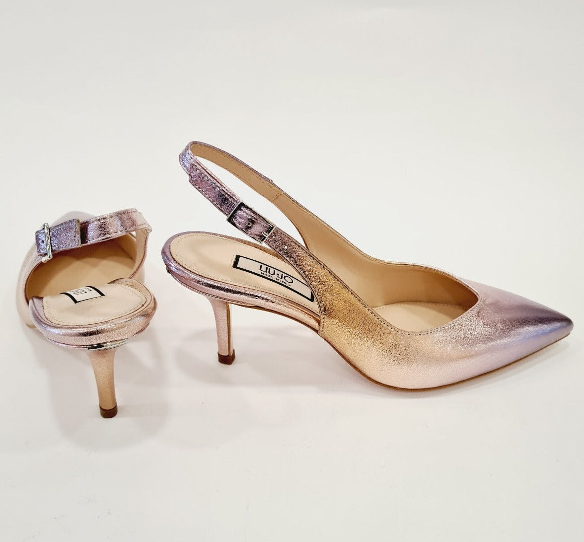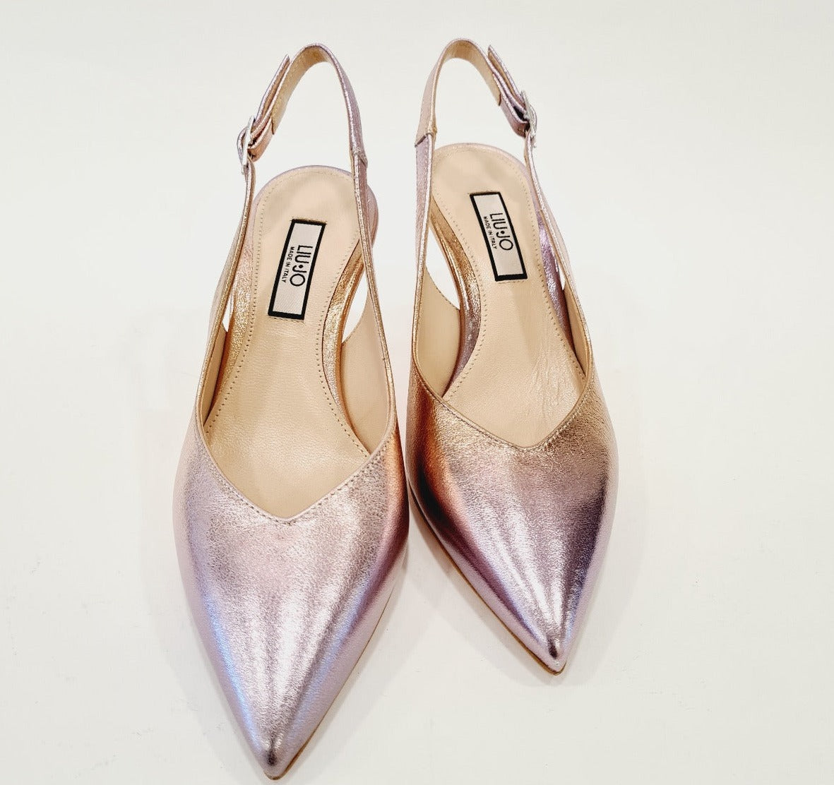 Liu-Jo sandalo chanel tacco alto 7 cm. pelle laminato multicolor gold-silver rif.703