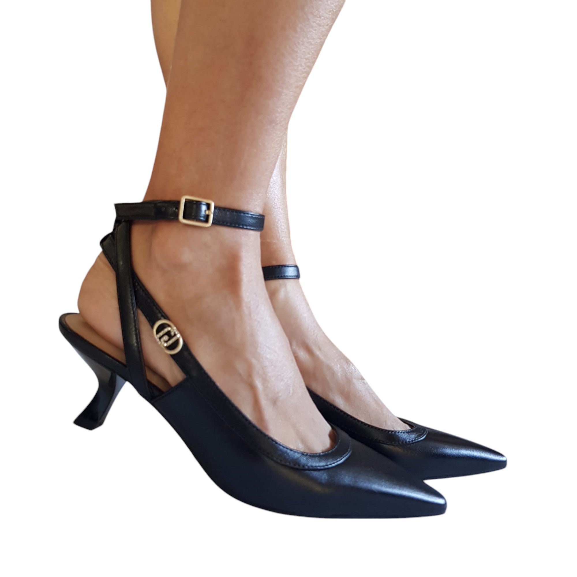 Liu-Jo Slingback Donna Pelle Nero con cinturino alla caviglia tacco alto 6 cm. Rif.850
