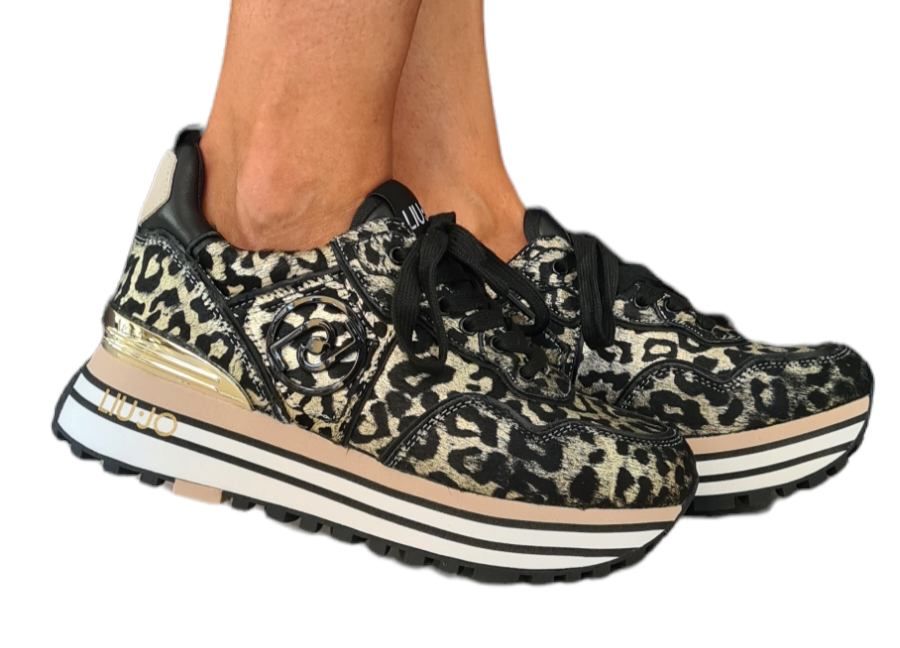 Liu-Jo Sneakers Cavallino Black Gold Argento fondo gomma alta 6 cm. rif.737