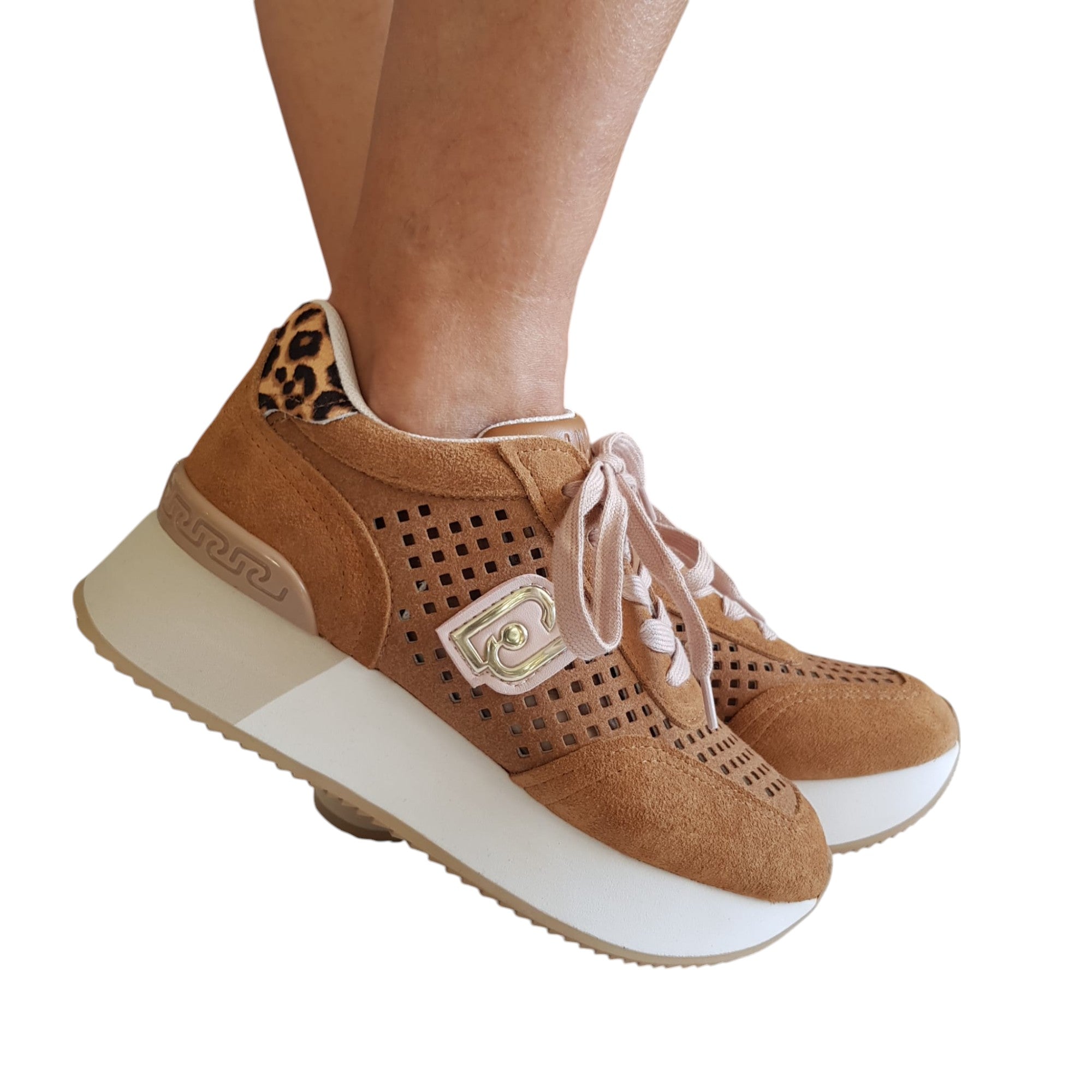 Liu-Jo Sneakers Donna Camoscio Cuoio fondo gomma alta 5 cm. Rif.839