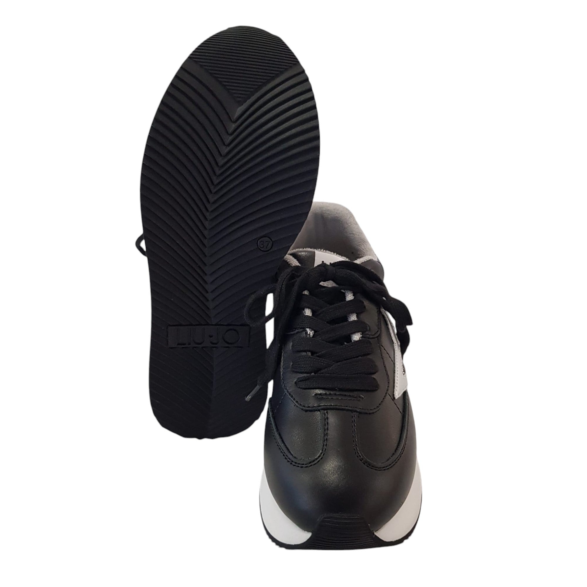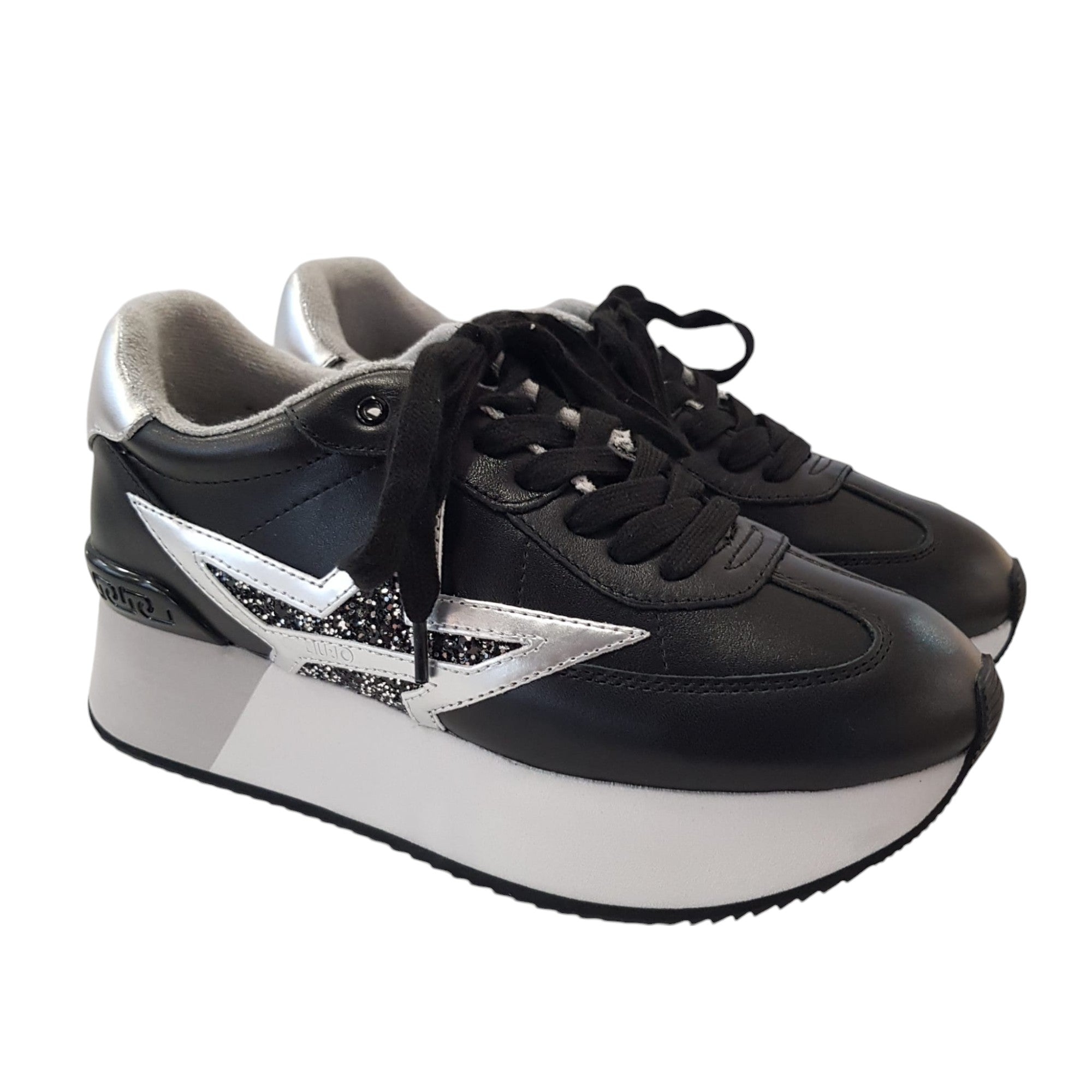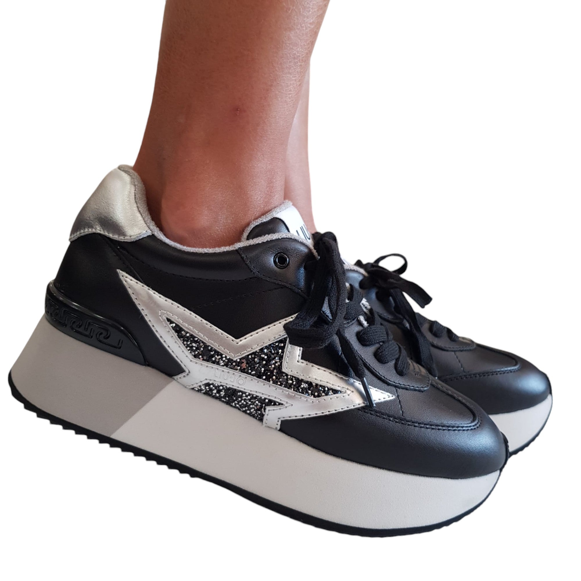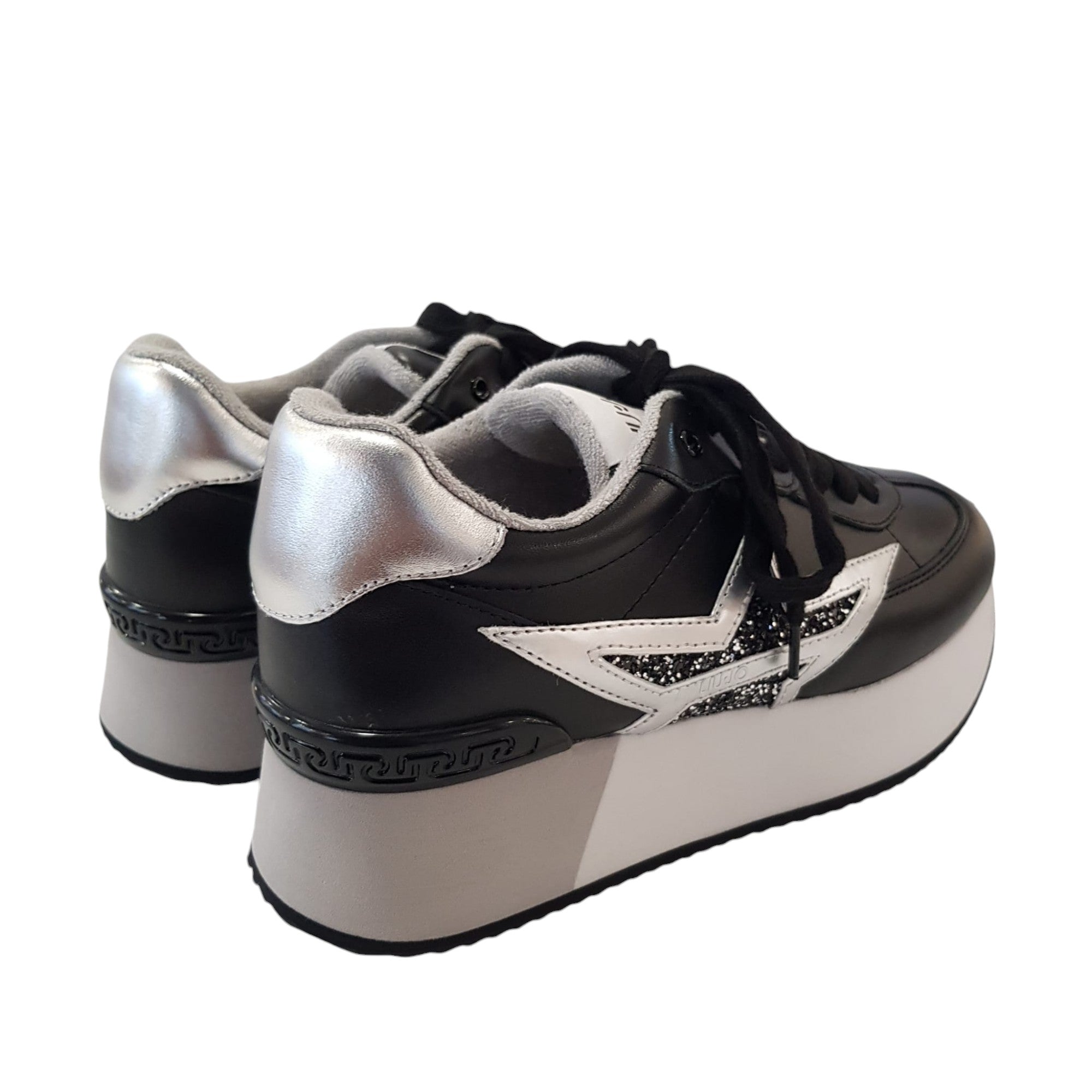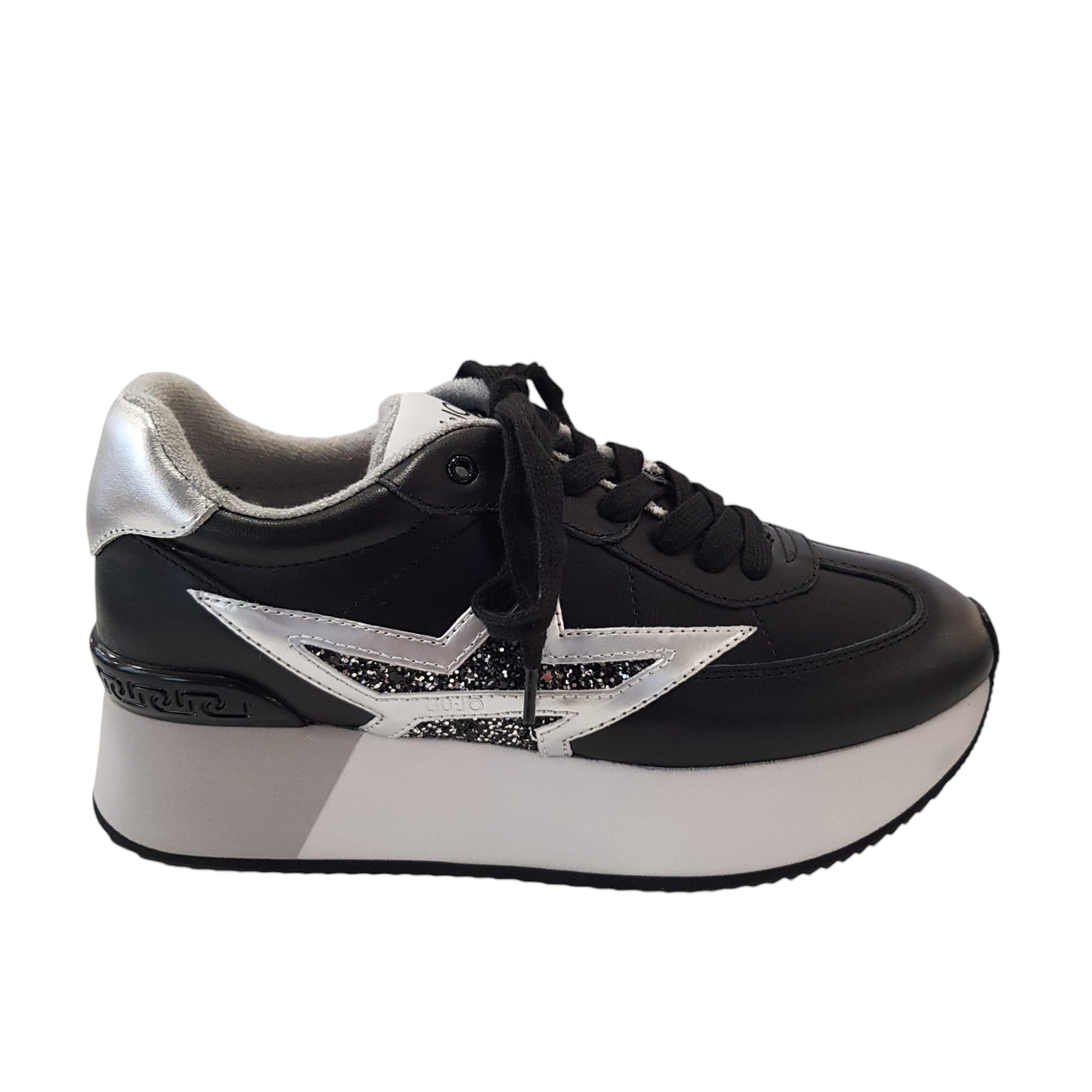 Liu-Jo Sneakers Donna Pelle Nero-Argento fondo gomma alta 4 cm. Rif.832