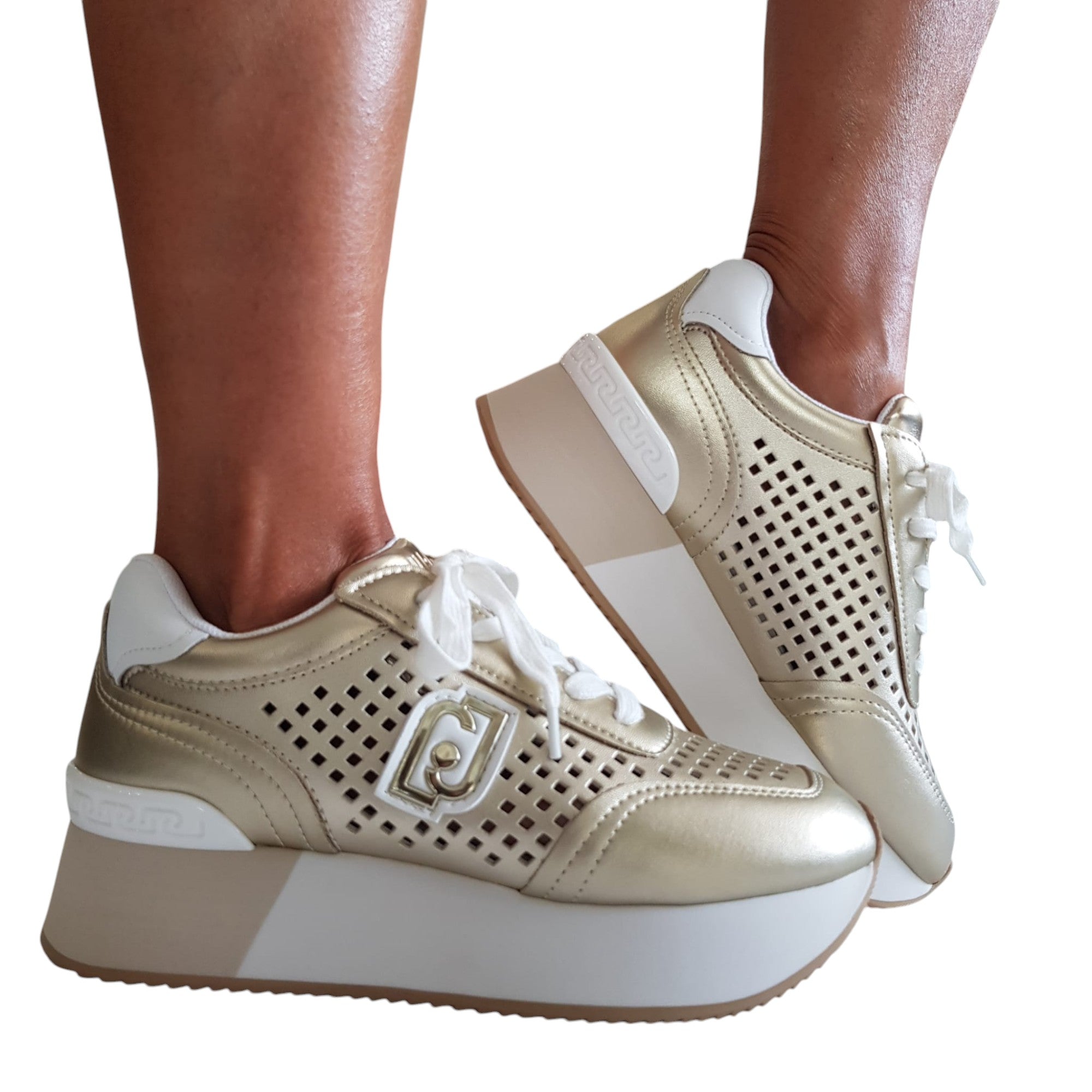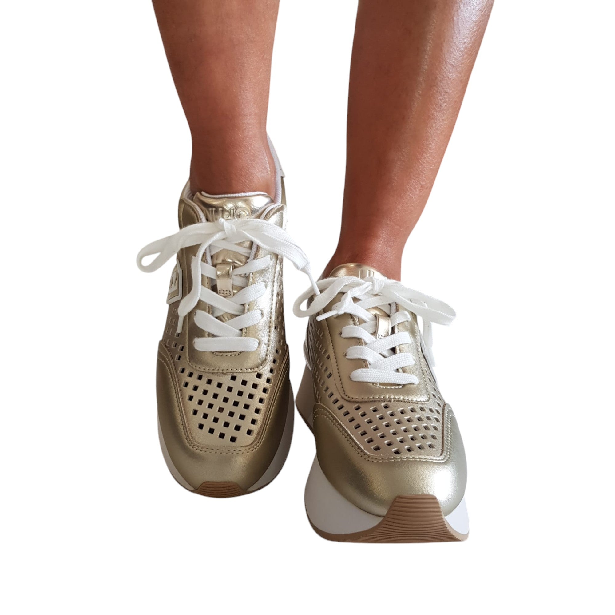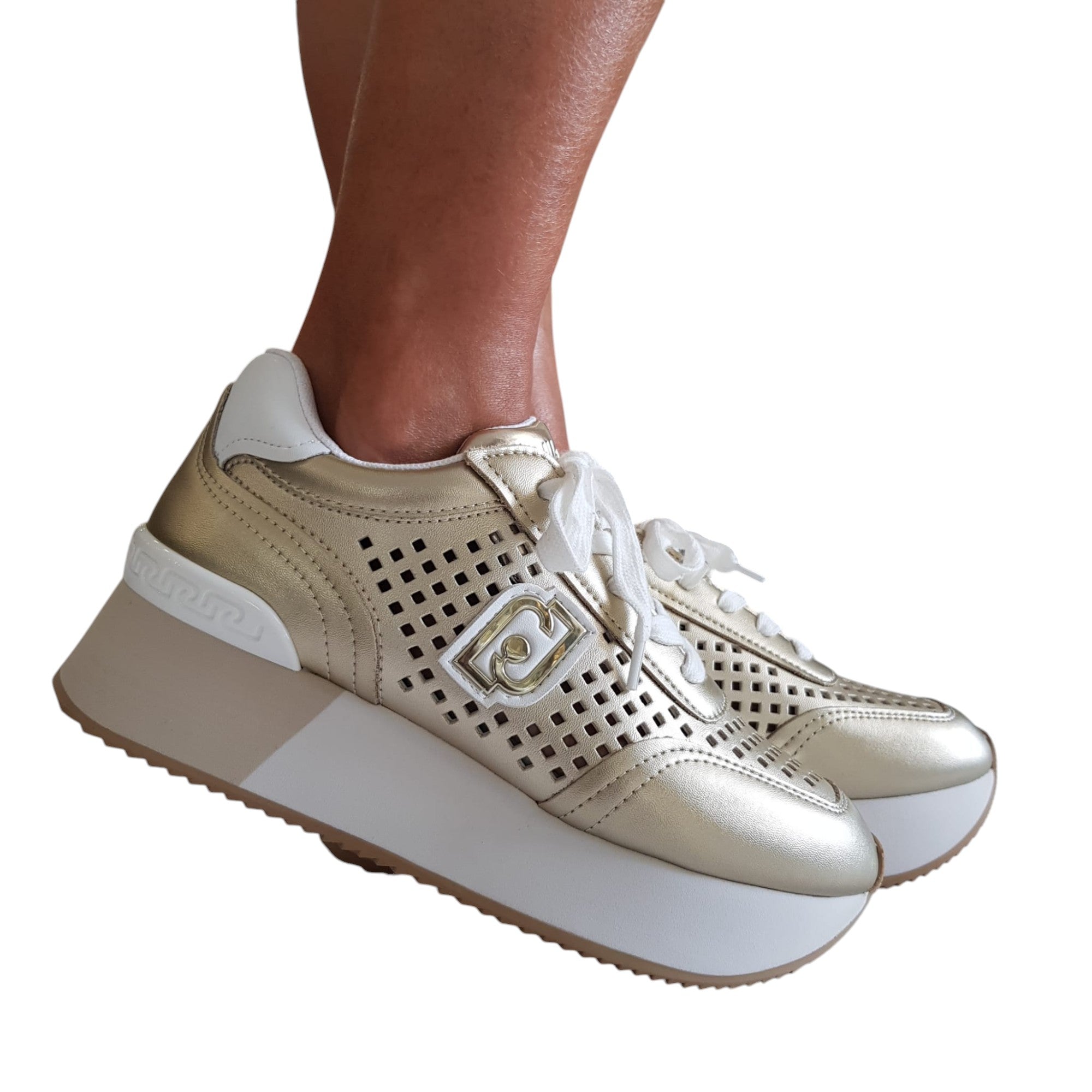 Liu-Jo Sneakers Donna Pelle laserata Oro fondo gomma alta 5 cm. Rif.841