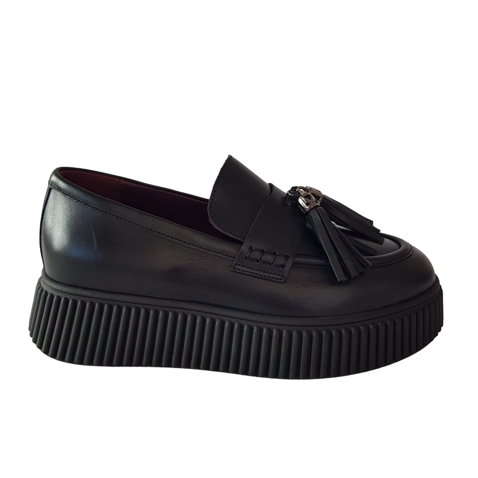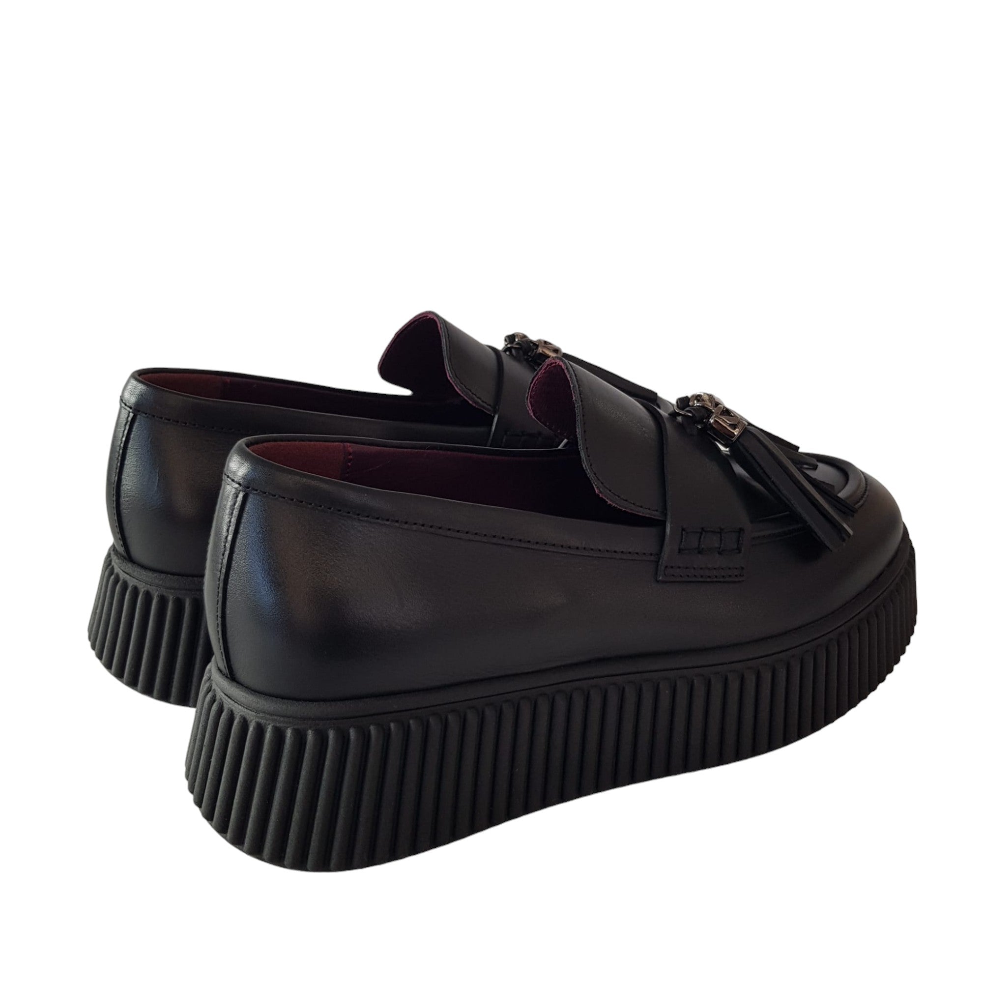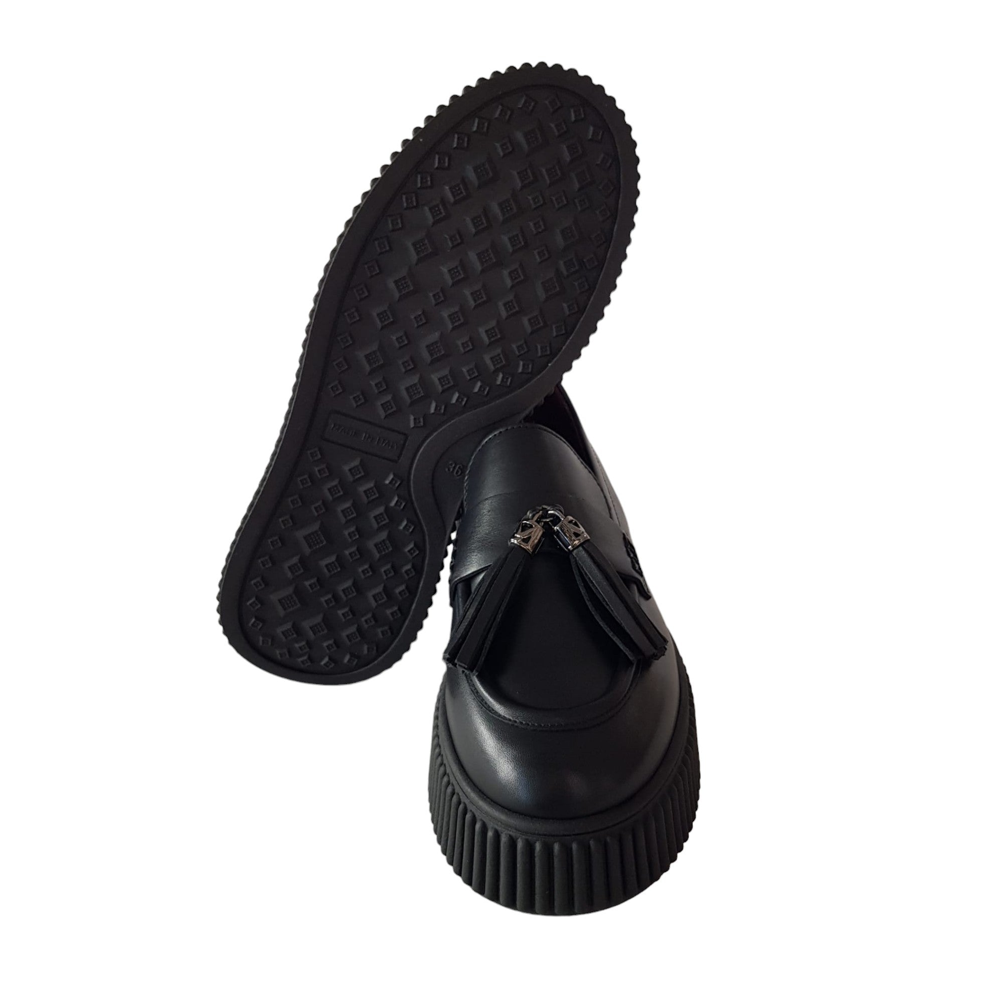 Lorenzo Mari Mocassino Donna zeppa fondo gomma 4 cm Pelle nero con nappina Rif.832