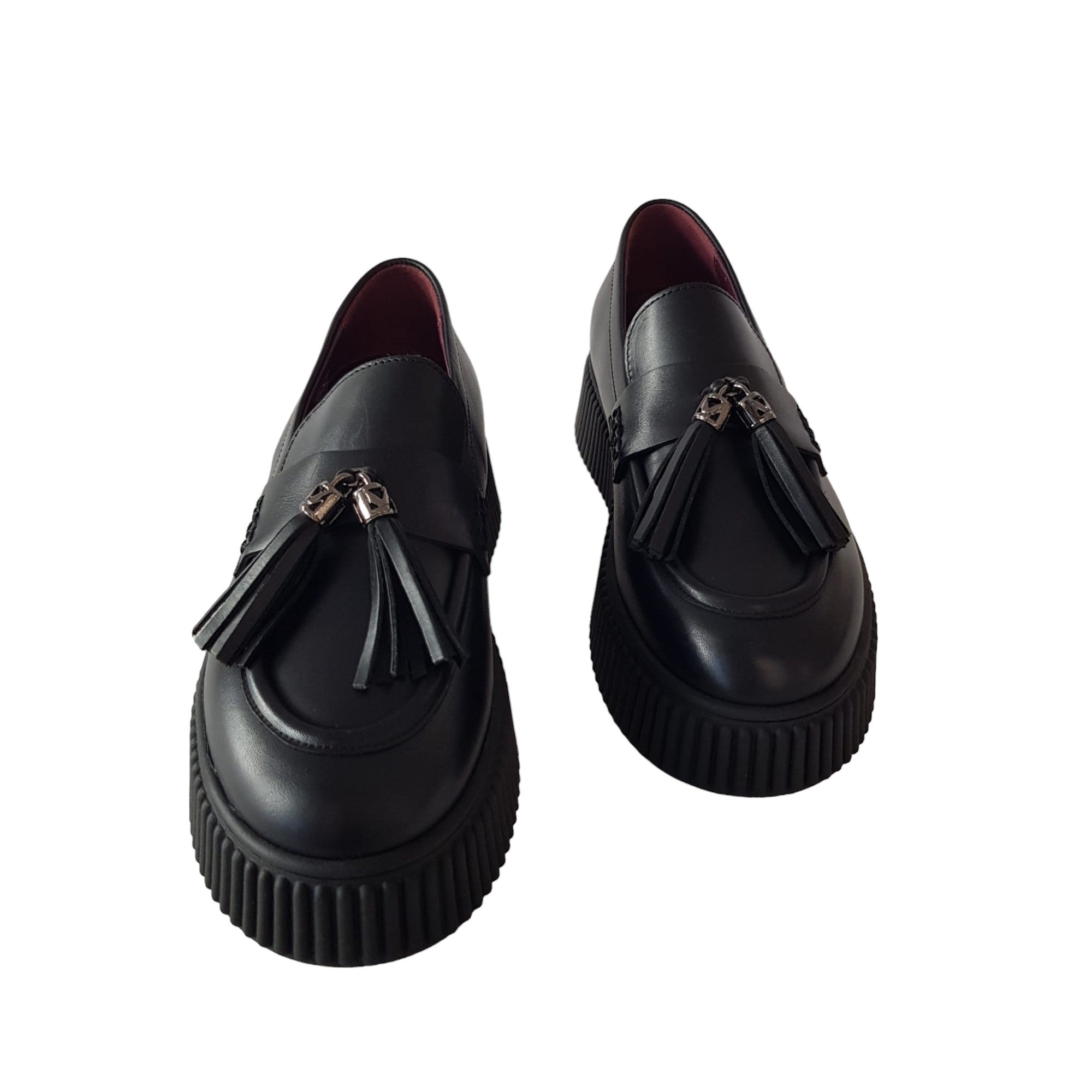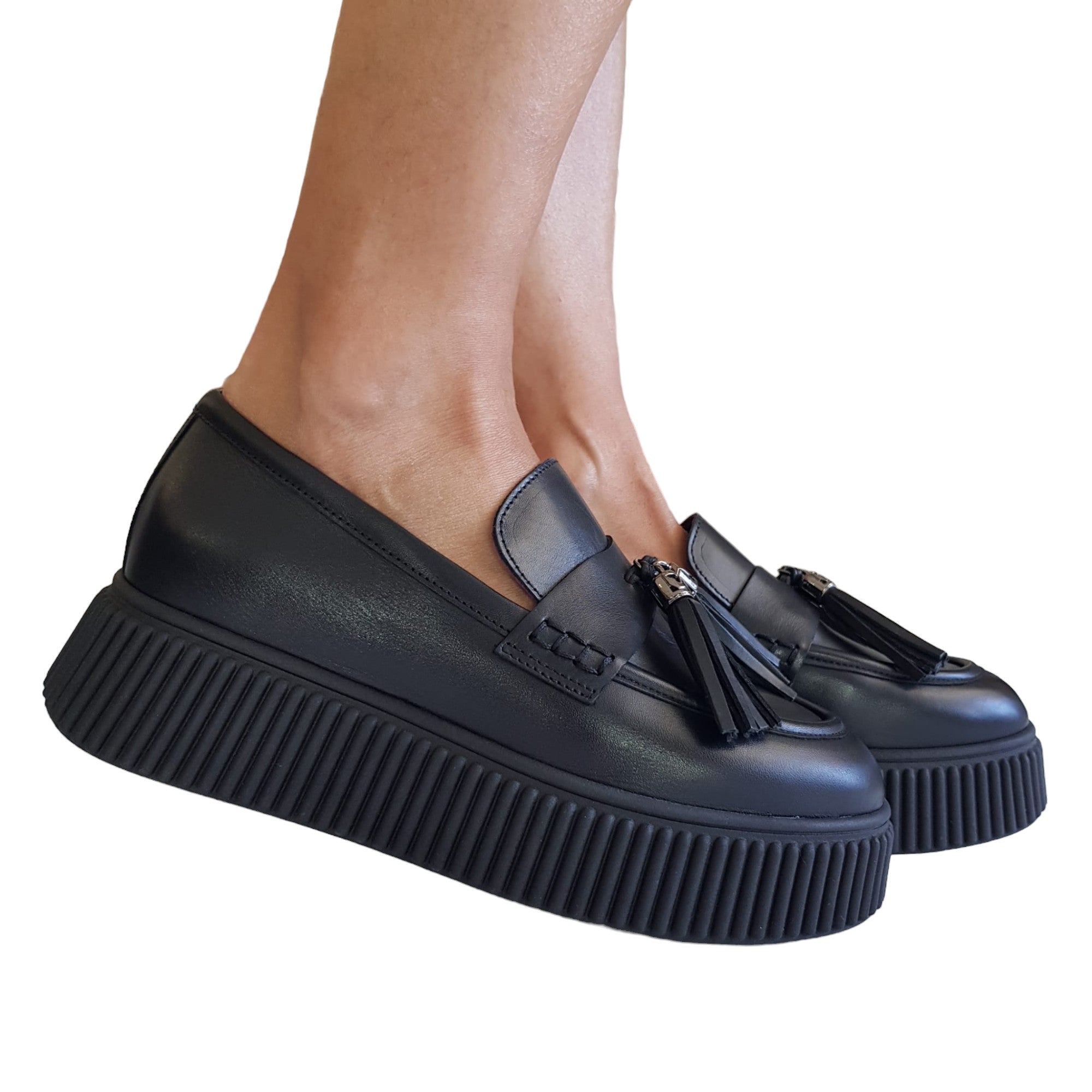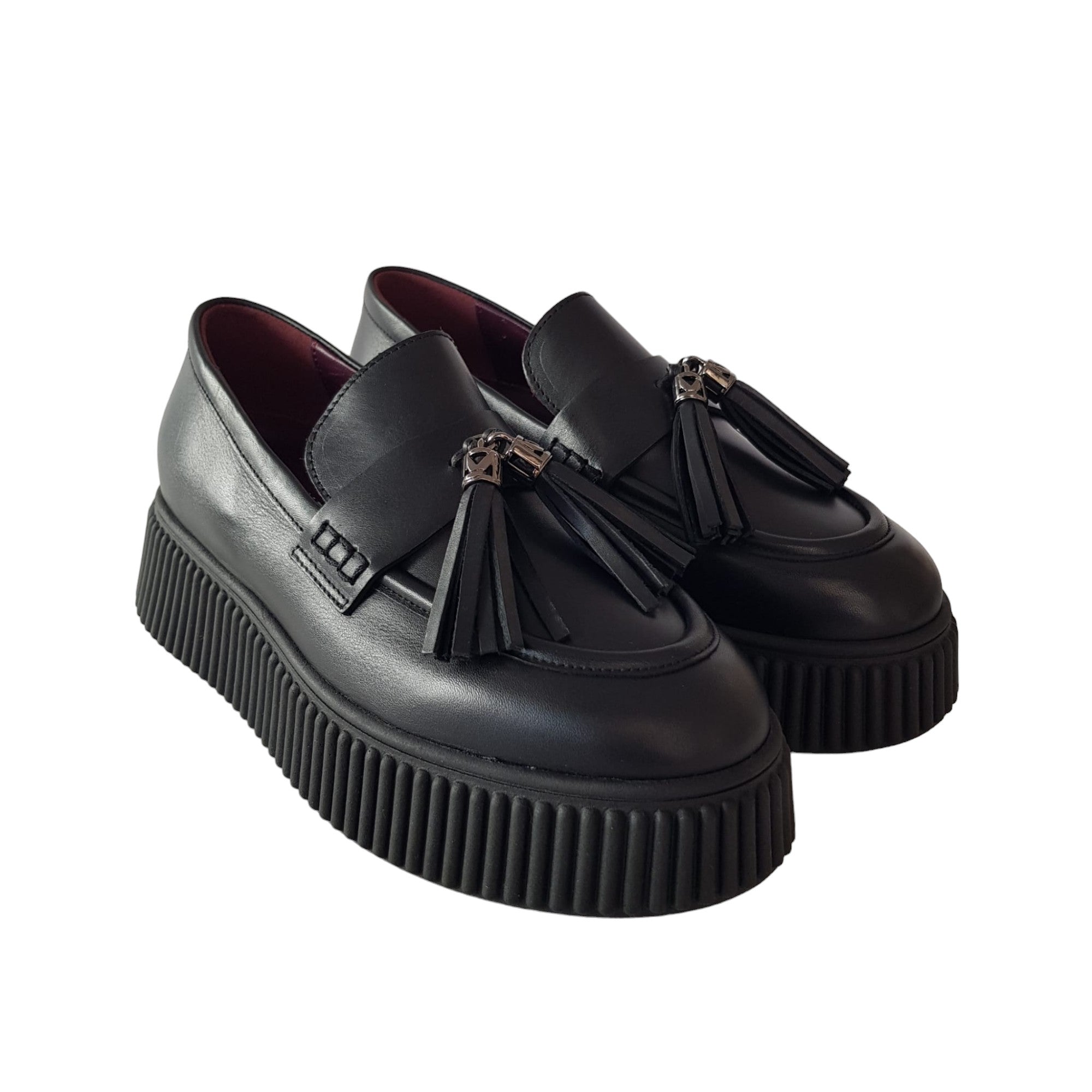 Lorenzo Mari Mocassino Donna zeppa fondo gomma 4 cm Pelle nero con nappina Rif.832