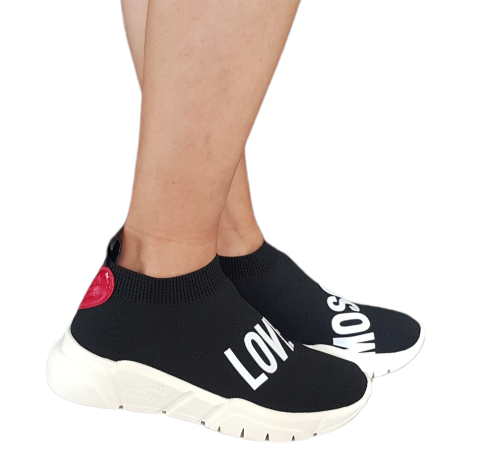 Love Moschino sneakers tessuto nero fondo gomma alta 4,5 cm rif.12