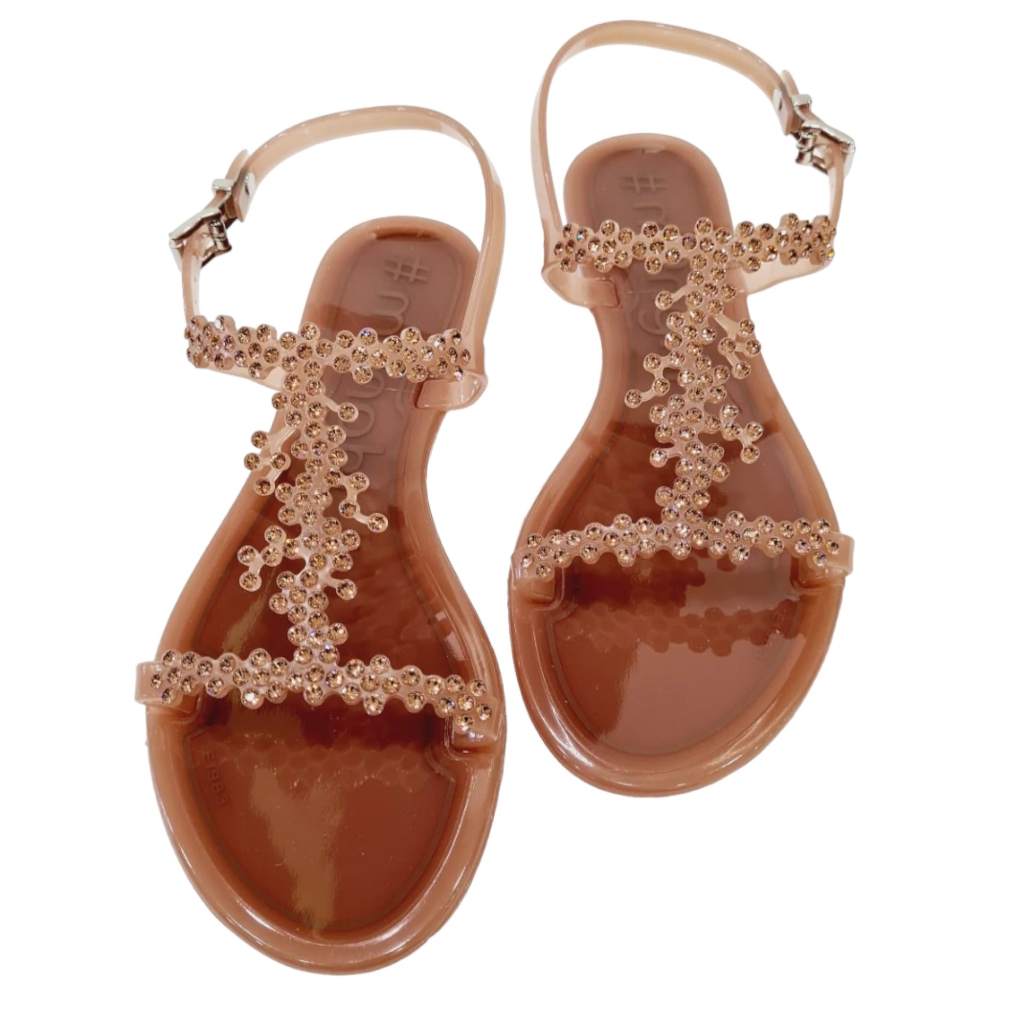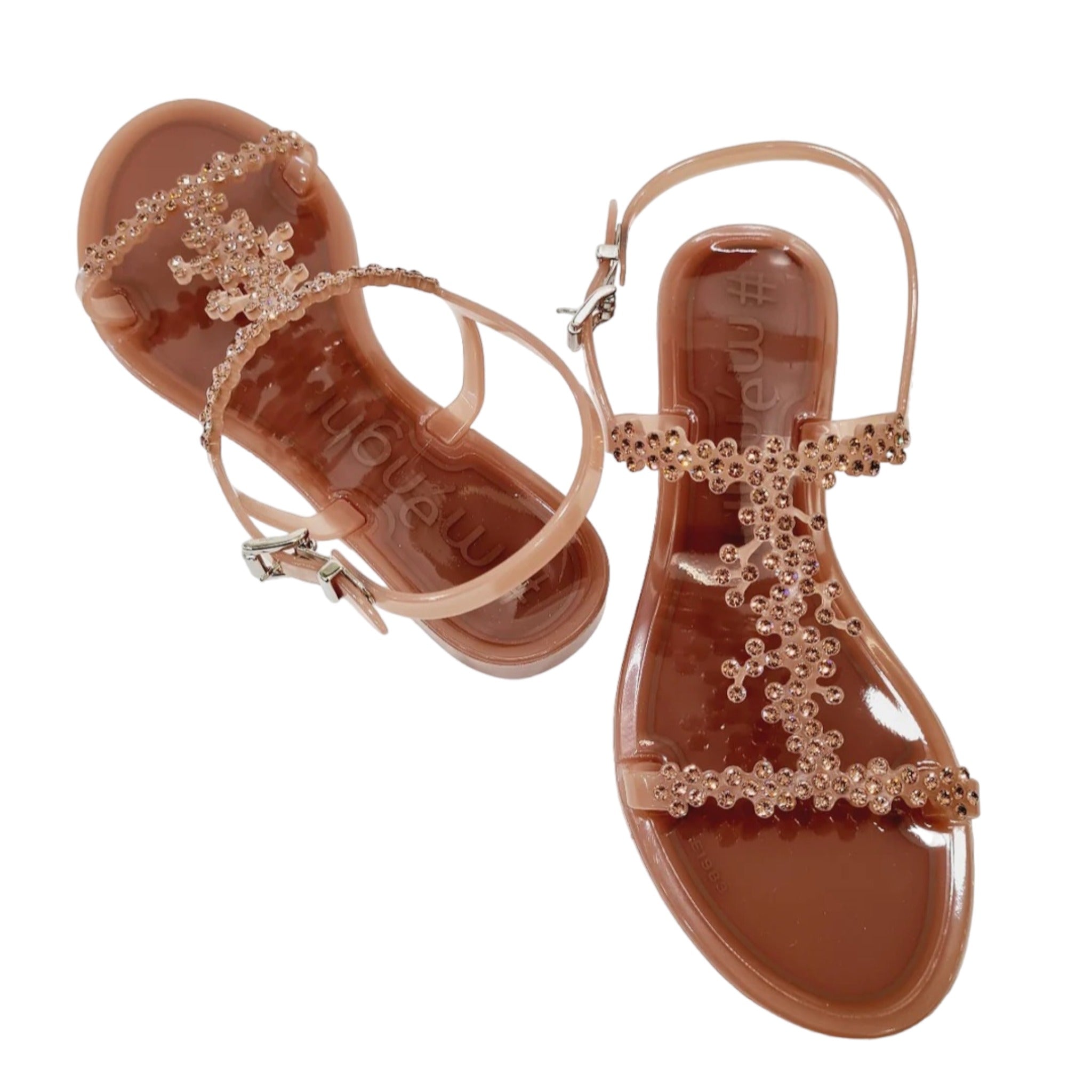 Menghi sandalo pianella poliuretano marrone con swarovski art.77