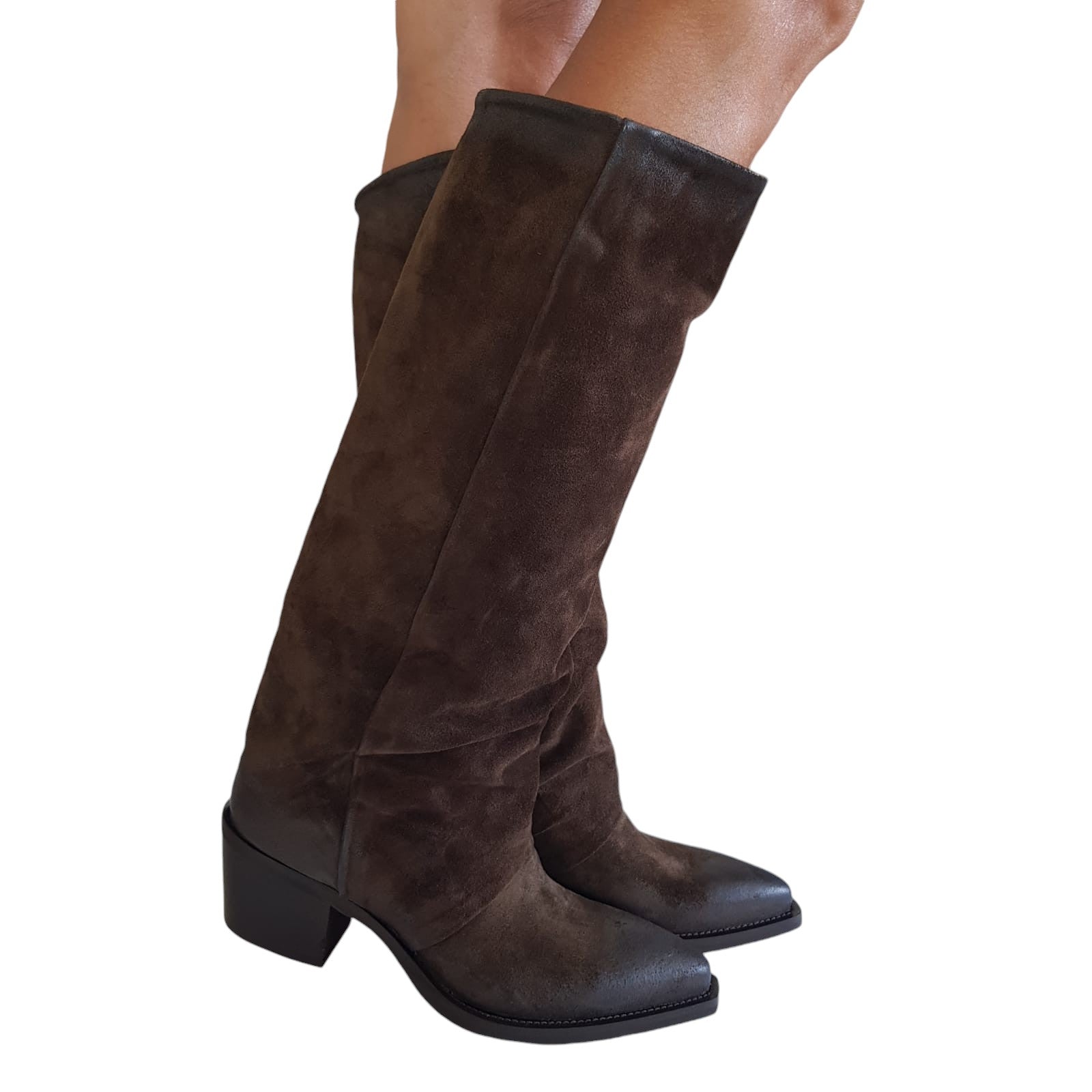 Metisse Stivale Texano Donna Crosta Testa di Moro tacco alto 6 cm. Rif.29