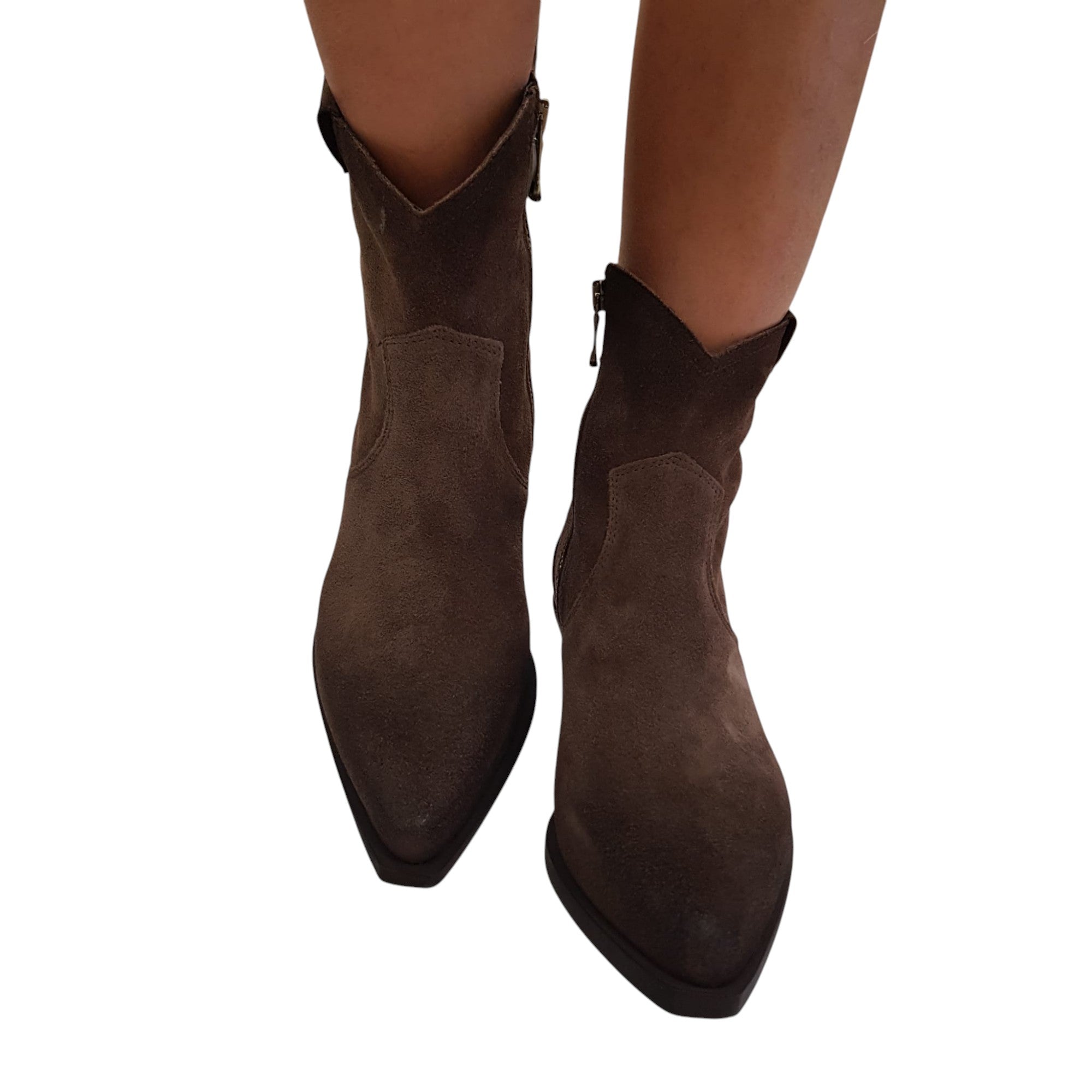 Metisse Stivaletto Texano Donna Camoscio Taupe' tacco alto 5 cm. Rif.52
