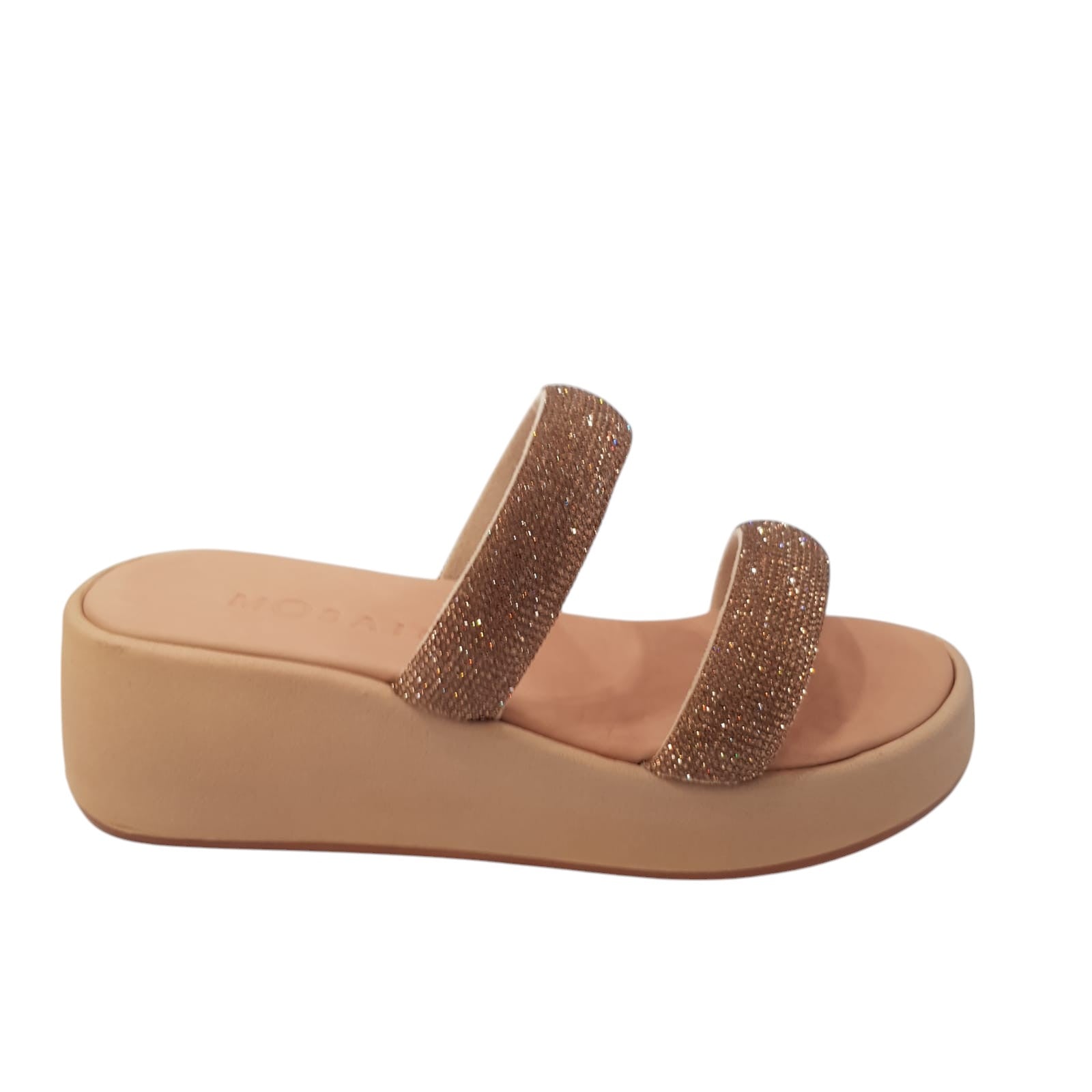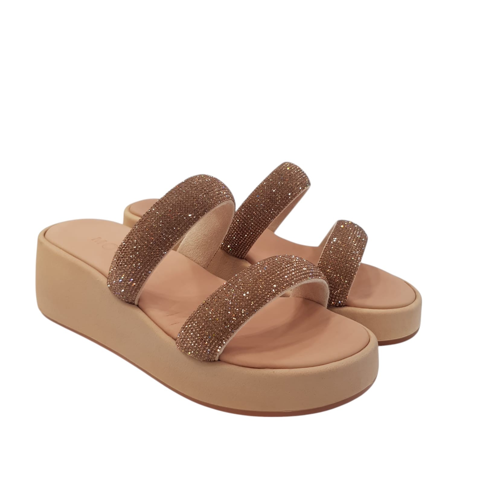Mosaic Sandalo Donna Zeppa alta 5,5 cm. Plateau 3 cm. Strass Gold Rif.51