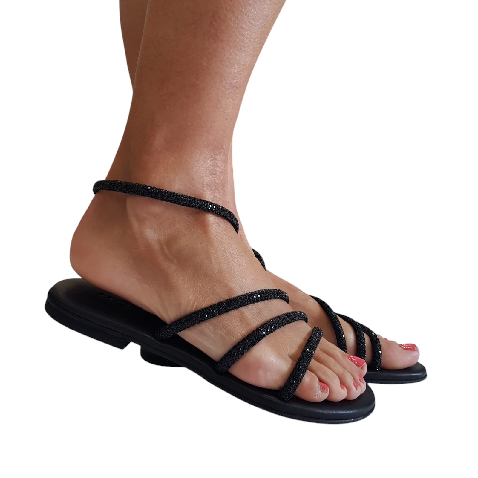 Mosaic Sandalo Donna Pelle e Strass Nero Rif.52