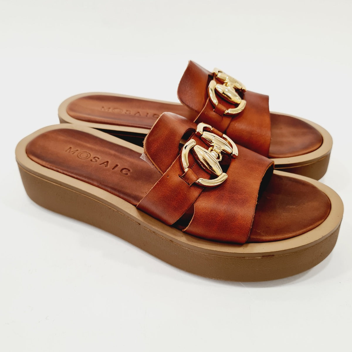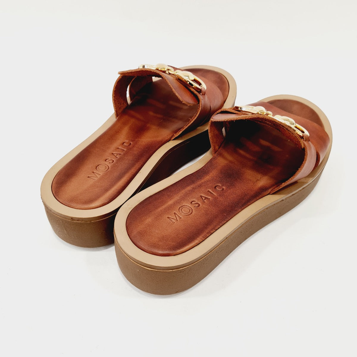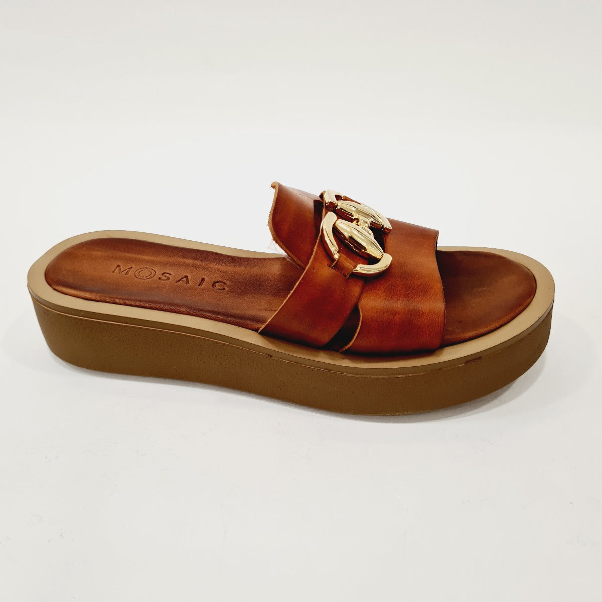 Mosaic sandalo zeppa alta 4 cm. Pelle Moro accessorio Oro rif.20