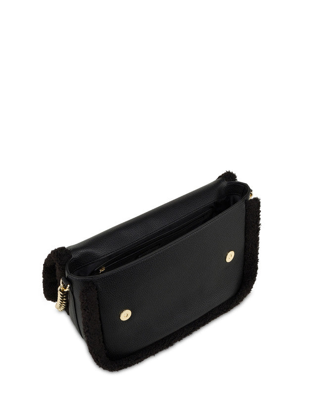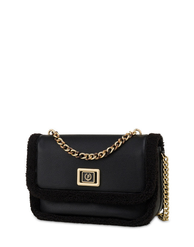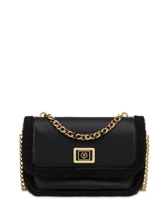 Pollini Borsa a tracolla dalla forma strutturata con maxi bordatura in tono. Accessorio logato in doppia galvanica e smalto. Catena in metallo e metacrilato. Molteplice portabilità: a mano, a spalla, a tracolla. Rif.824
