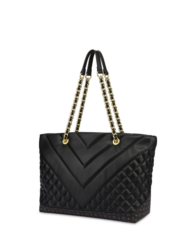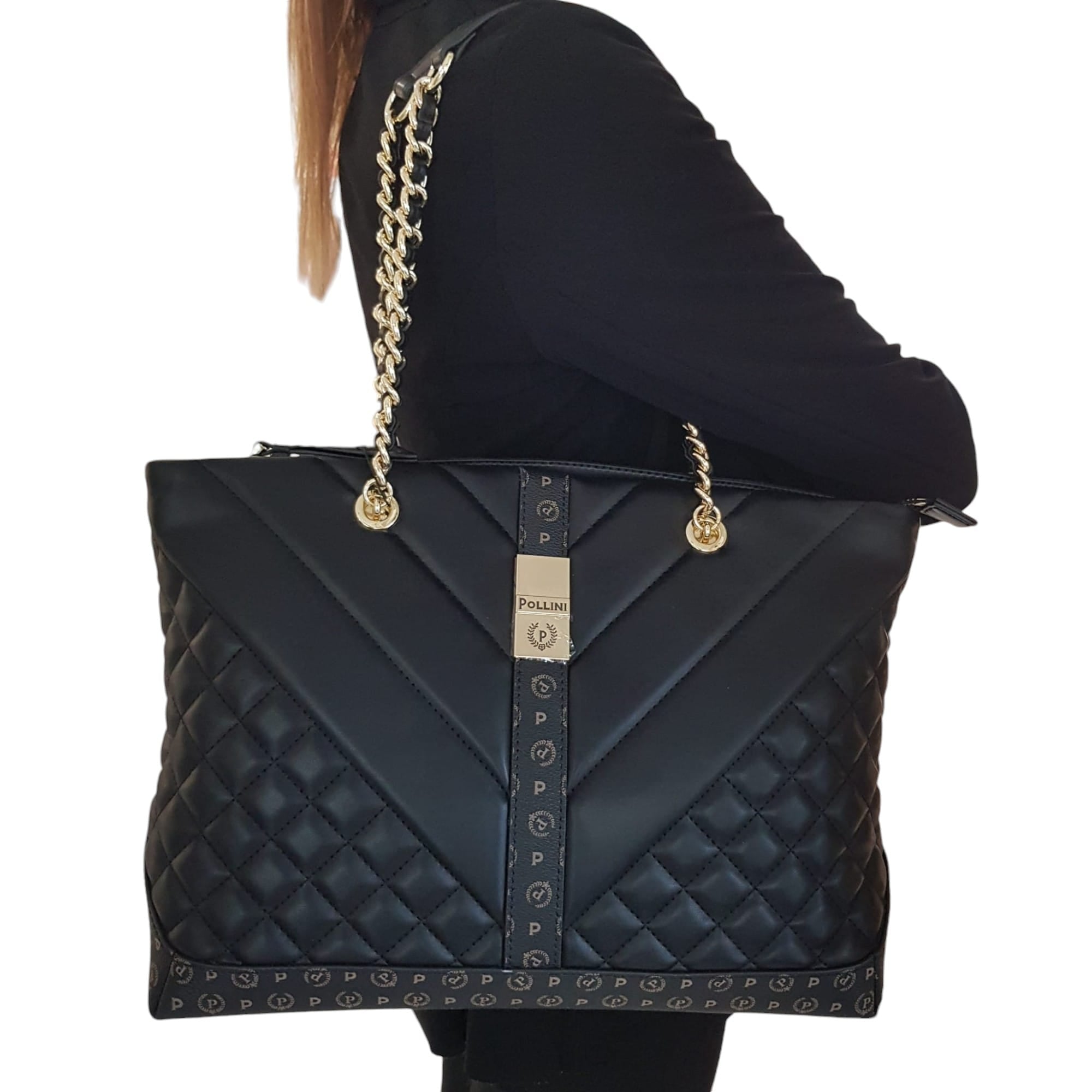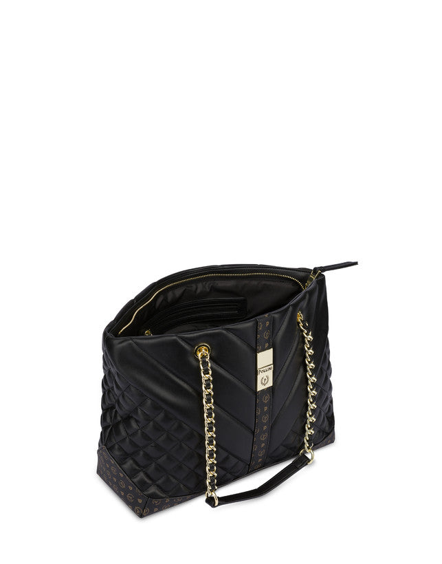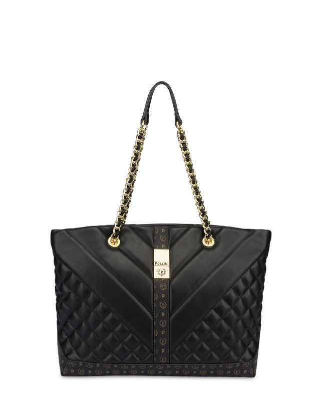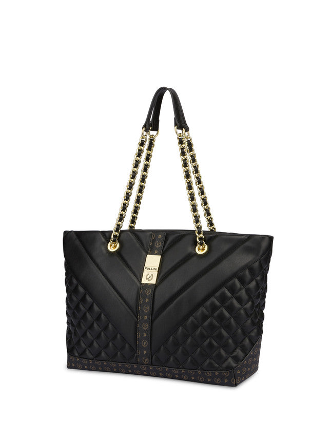 Pollini Borsa Donna tote con lavorazione matelassé con effetto geometrico degradé. Il quadrante frontale si impreziosisce di una nuova placca metallica logata, effetto gold. Manici in catena con infilatura in tinta. Art.735