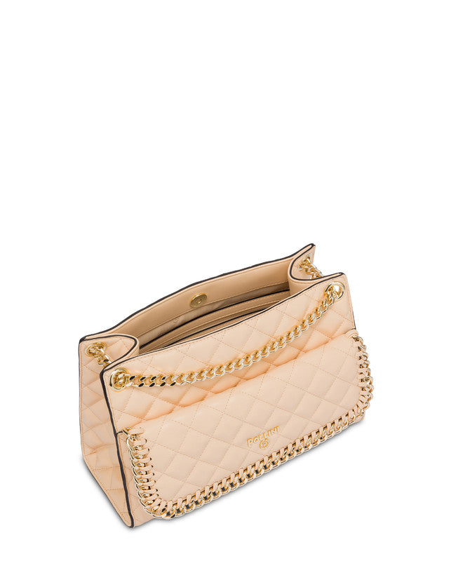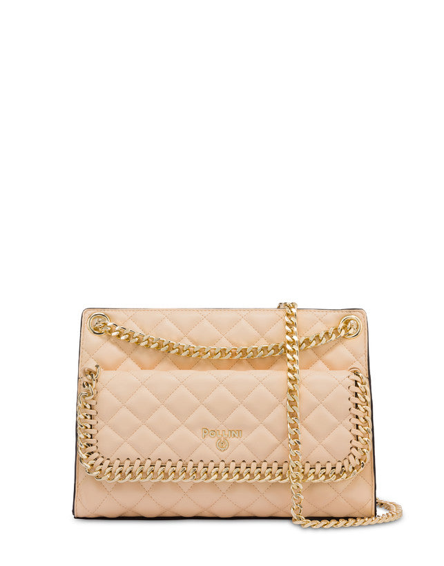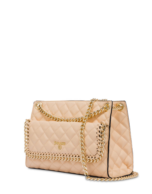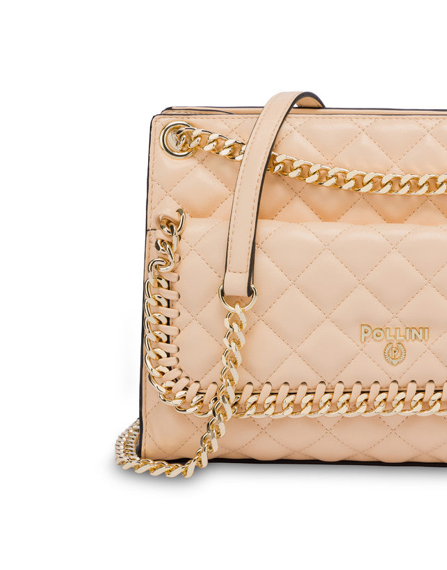 Pollini donna Borsa doppio manico trapuntata caratterizzata da un'infilatura con catena che ne evidenzia le forme e dona al look un tocco ultra glam. Tracolla in catena scorrevole con spallaccio per doppia portabilità: a spalla o a bandoliera. Rif.882