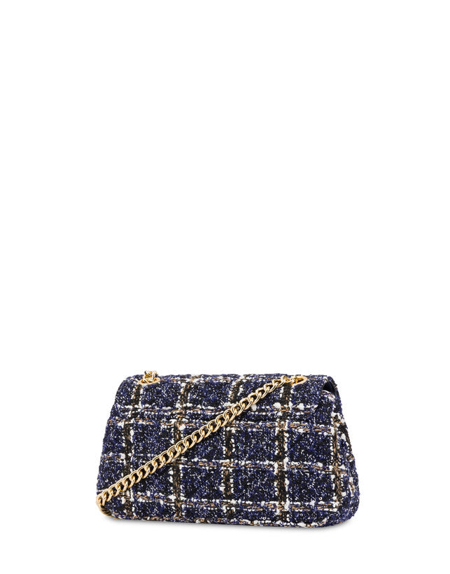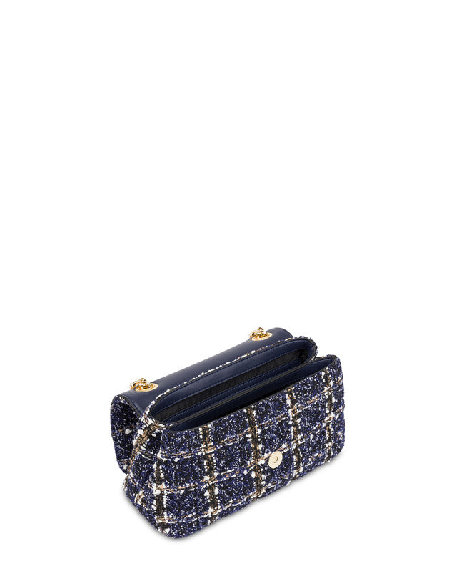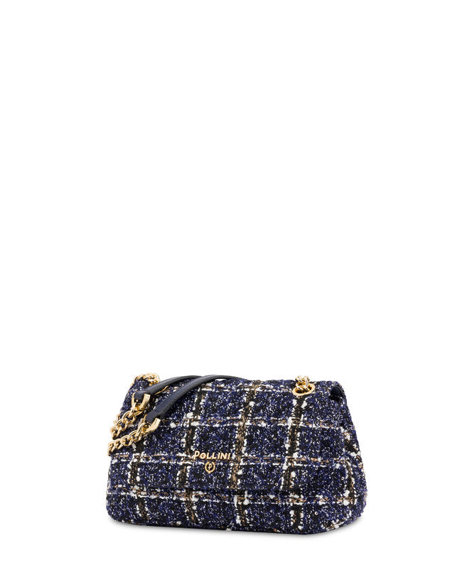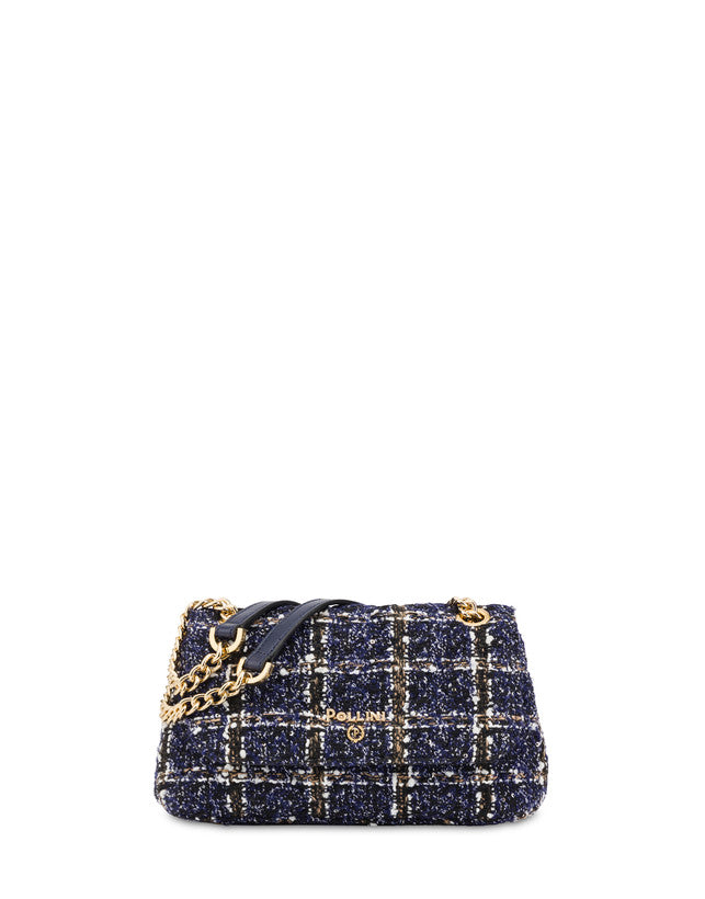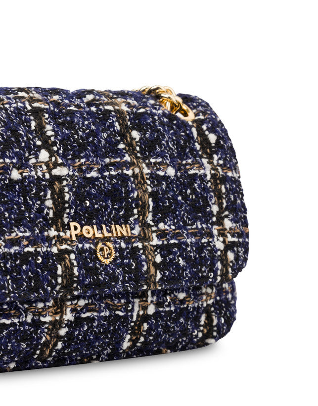 Pollini Piccola borsa a spalla in tessuto bouclé. Doppia catena scorrevole per una molteplice portabilità: a spalla, a mano e a tracolla. Due scomparti interni. Rif.850