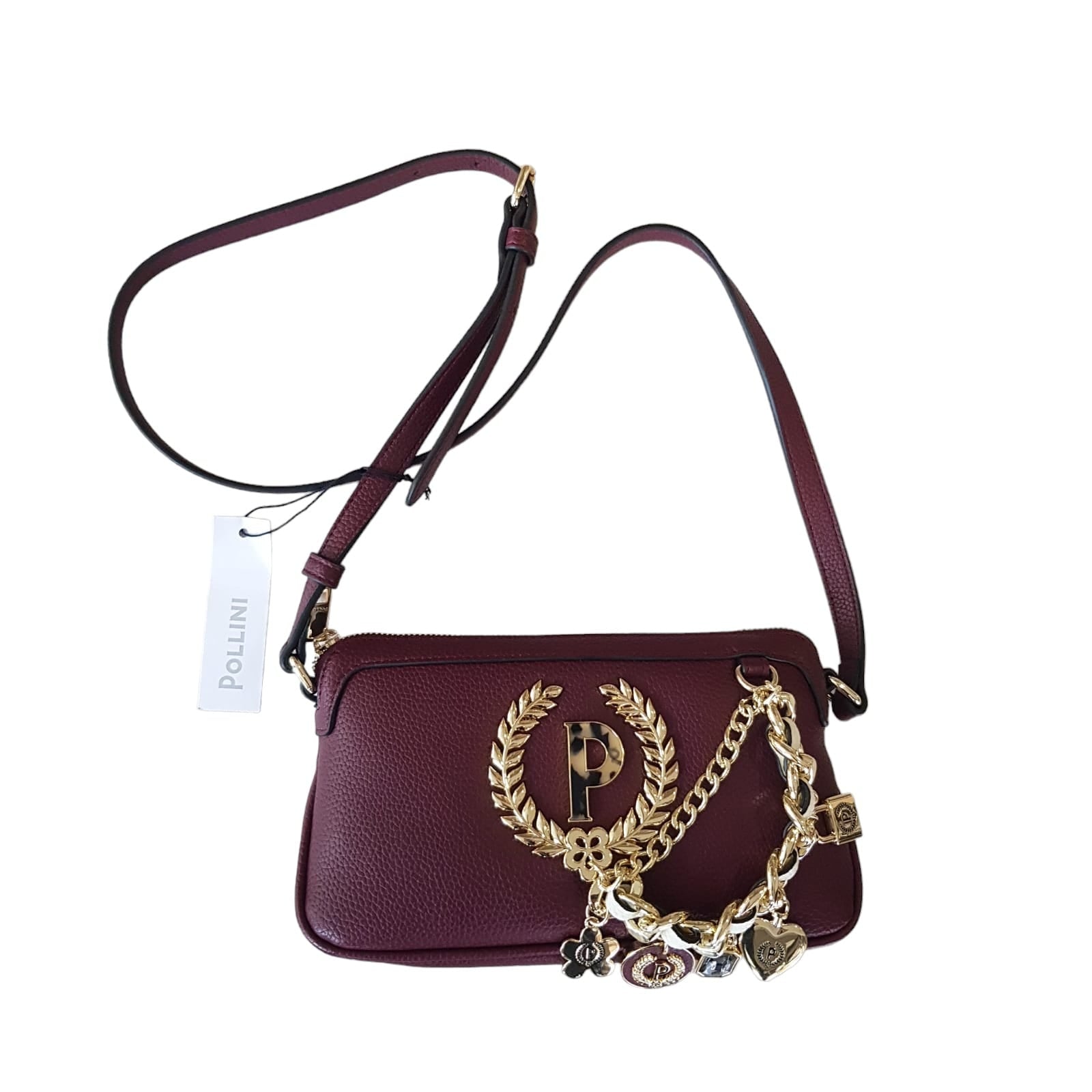 Pollini borsa a tracolla con maxi logo P-alloro in metacrilato tartarugato. Doppia catena arricchita con macro infilatura e charm logati. Rif.859