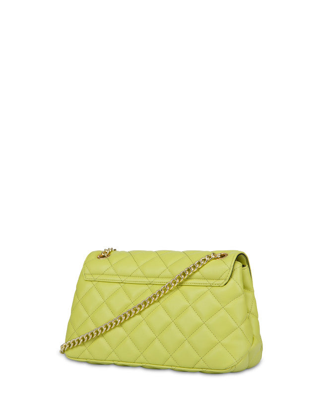 Pollini donna Borsa a spalla con lavorazione Matelassé. Doppia catena scorrevole per una molteplice portabilità: a spalla, a mano e a tracolla. Due scomparti interni. Rif.887